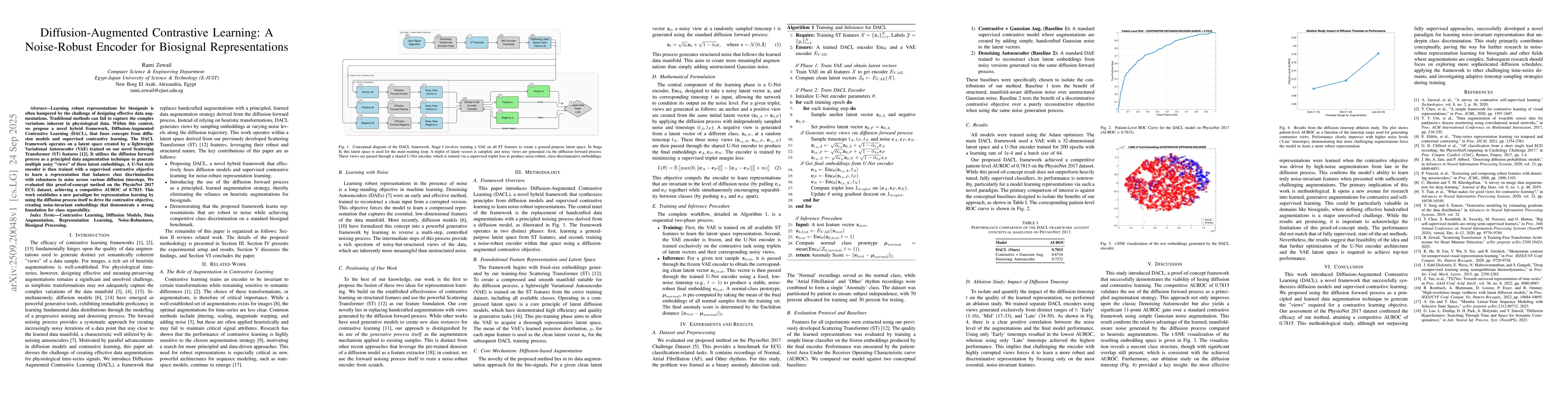 This work establishes a new paradigm for learning noise-robust representations by integrating diffusion processes into contrastive learning. It provides a foundation for improving class separability in biosignal analysis, which is critical for reliable anomaly detection in medical applications.