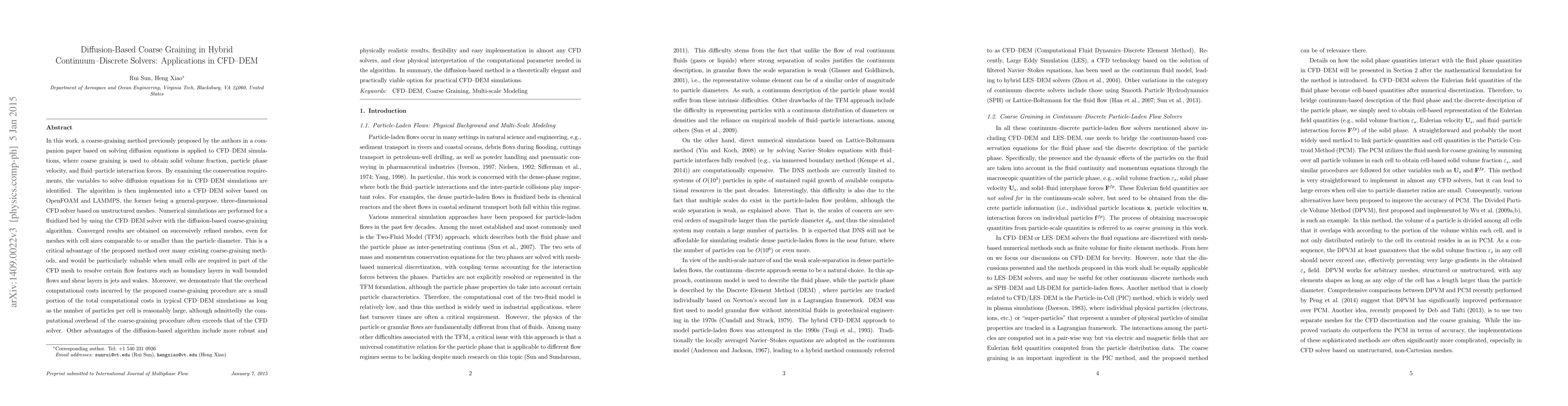 This paper applies a diffusion-based coarse-graining method to CFD-DEM simulations, achieving robust results for solid volume fraction and fluid-particle interactions. The method is implemented in a CFD-DEM solver, showing advantages in resolving small-scale flow features and demonstrating minimal additional computational costs.