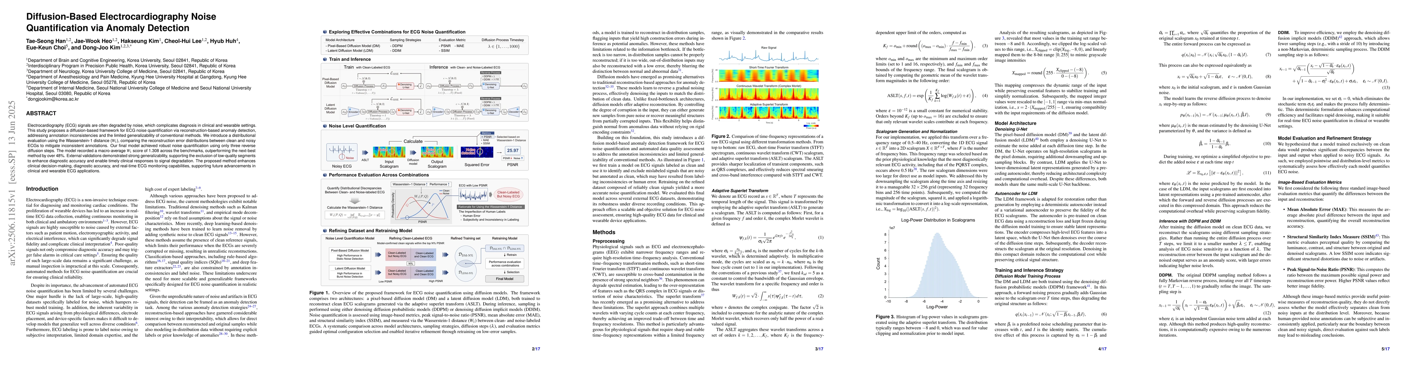 The study proposes a diffusion-based framework for ECG noise quantification via reconstruction-based anomaly detection, using the Wasserstein-1 distance for distributional evaluation.