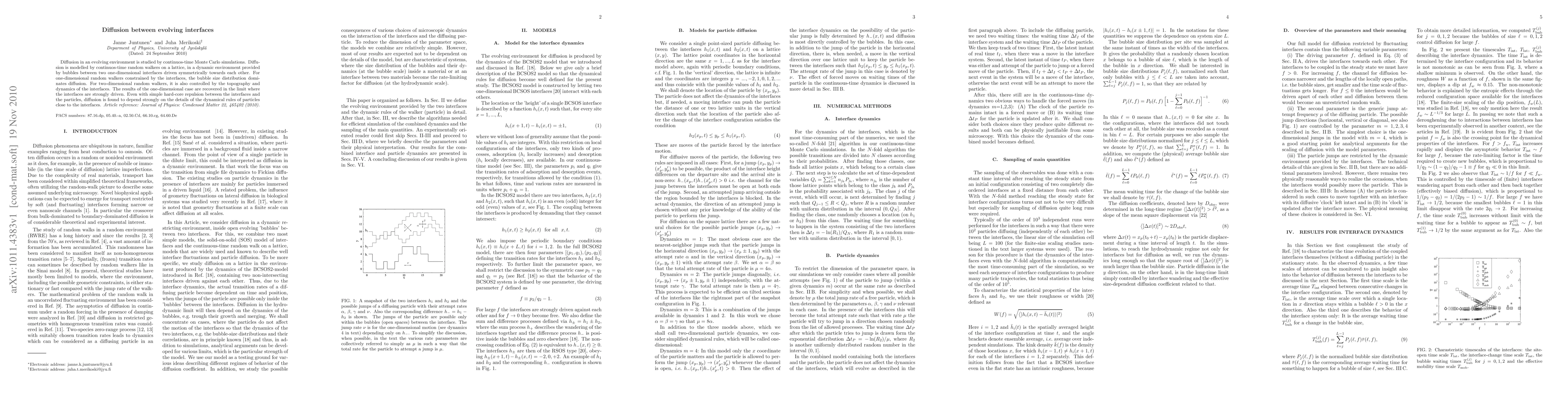 Diffusion in an evolving environment is studied by continuos-time Monte Carlo simulations. Diffusion is modelled by continuos-time random walkers on a lattice, in a dynamic environment provided by bubbles between two one-dimensional interfaces driven symmetrically towards each other. For one-dimensional random walkers constrained by the interfaces, the bubble size distribution domi- nates diffusion. For two-dimensional random walkers, it is also controlled by the topography and dynamics of the interfaces. The results of the one-dimensional case are recovered in the limit where the interfaces are strongly driven. Even with simple hard-core repulsion between the interfaces and the particles, diffusion is found to depend strongly on the details of the dynamical rules of particles close to the interfaces. Article reference: Journal of Physics: Condensed Matter 22, 465402 (2010).