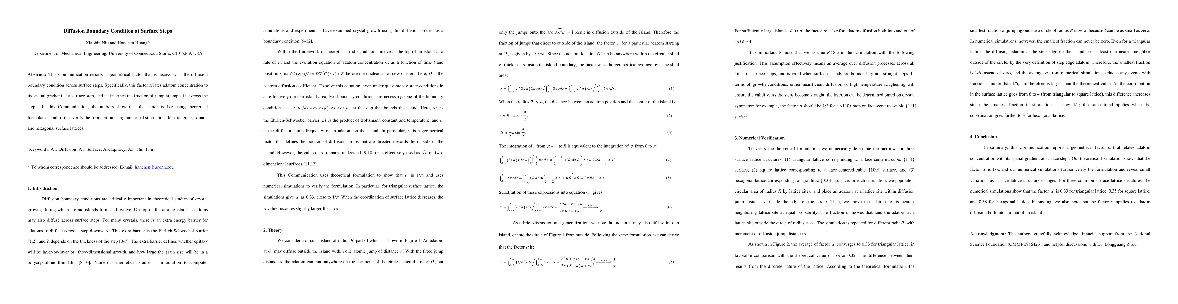 This Communication reports a geometrical factor that is necessary in the diffusion boundary condition across surface steps. Specifically, this factor relates adatom concentration to its spatial gradient at a surface step, and it describes the fraction of jump attempts that cross the step. In this Communication, the authors show that the factor is 1/\Pi using theoretical formulation and further verify the formulation using numerical simulations for triangular, square, and hexagonal surface lattices.