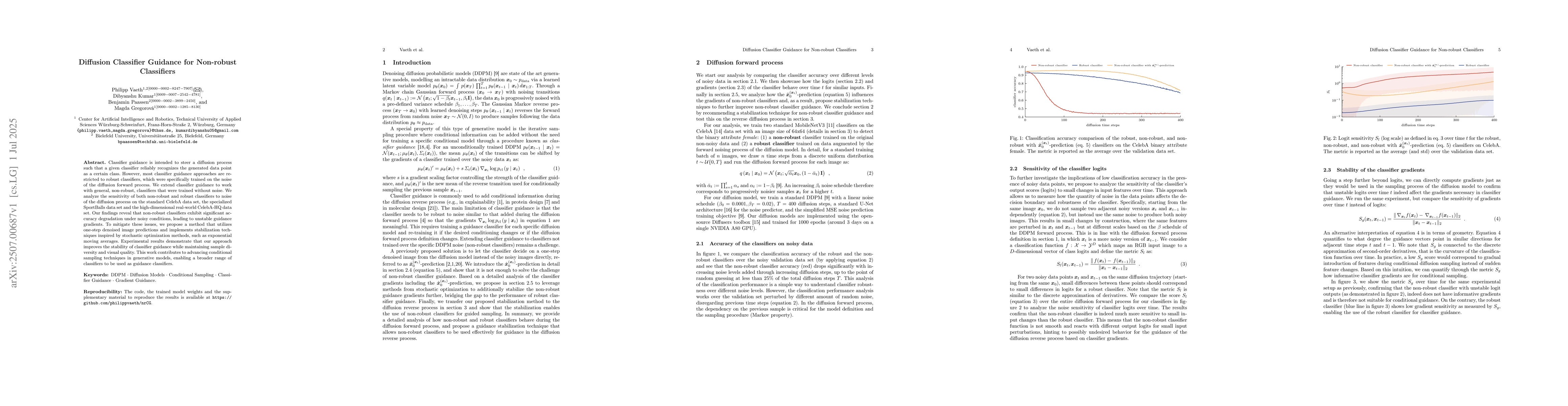 Classifier guidance is intended to steer a diffusion process such that a given classifier reliably recognizes the generated data point as a certain class. However, most classifier guidance approaches are restricted to robust classifiers, which were specifically trained on the noise of the diffusion forward process. We extend classifier guidance to work with general, non-robust, classifiers that were trained without noise. We analyze the sensitivity of both non-robust and robust classifiers to noise of the diffusion process on the standard CelebA data set, the specialized SportBalls data set and the high-dimensional real-world CelebA-HQ data set. Our findings reveal that non-robust classifiers exhibit significant accuracy degradation under noisy conditions, leading to unstable guidance gradients. To mitigate these issues, we propose a method that utilizes one-step denoised image predictions and implements stabilization techniques inspired by stochastic optimization methods, such as exponential moving averages. Experimental results demonstrate that our approach improves the stability of classifier guidance while maintaining sample diversity and visual quality. This work contributes to advancing conditional sampling techniques in generative models, enabling a broader range of classifiers to be used as guidance classifiers.