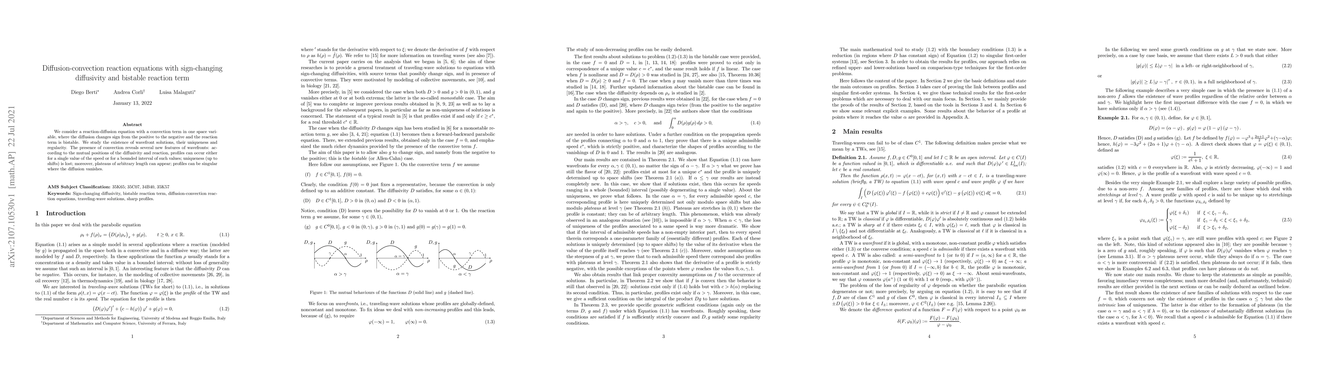 This paper investigates reaction-diffusion equations with a sign-changing diffusivity and a bistable reaction term, focusing on the existence, uniqueness, and regularity of wavefront solutions. The convection term introduces new features, including multiple speed profiles, loss of uniqueness, and the potential for singular, plateau-like solutions.