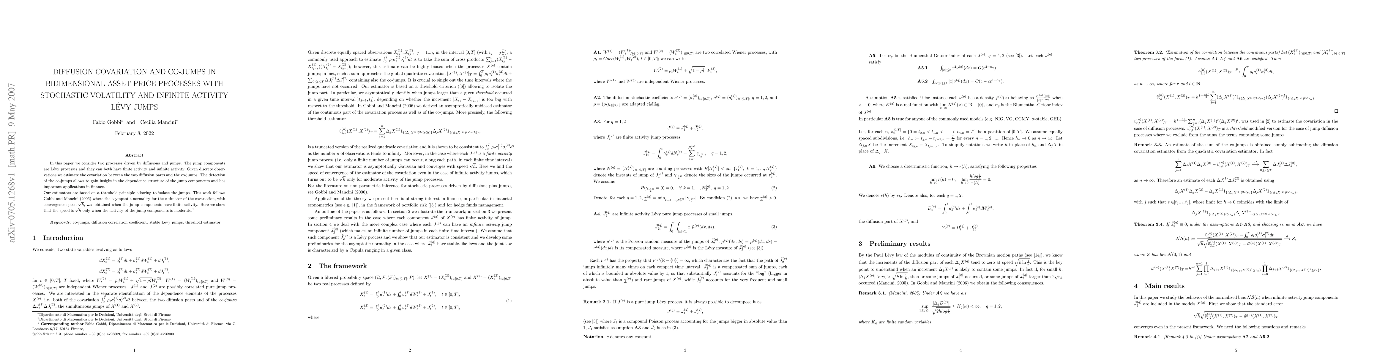 This paper estimates the covariation between diffusion parts and co-jumps in bidimensional asset price processes with stochastic volatility and Lévy jumps. It introduces estimators based on a threshold principle to detect co-jumps, providing insights into the dependence structure of the jump components, which has significant financial applications.