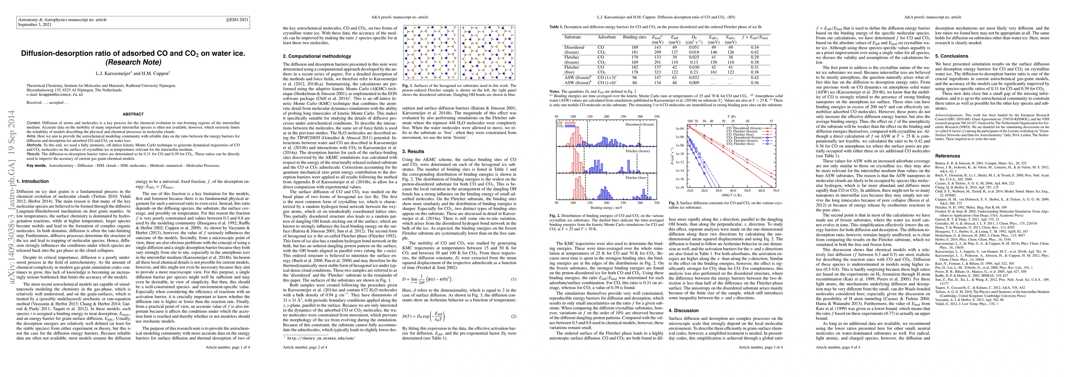 This study employs a kinetic Monte Carlo technique to determine the diffusion-to-desorption ratio for CO and CO$_2$ on water ice, finding 0.31 for CO and 0.39 for CO$_2$, aiming to enhance the precision of astrochemical models in star-forming regions.
