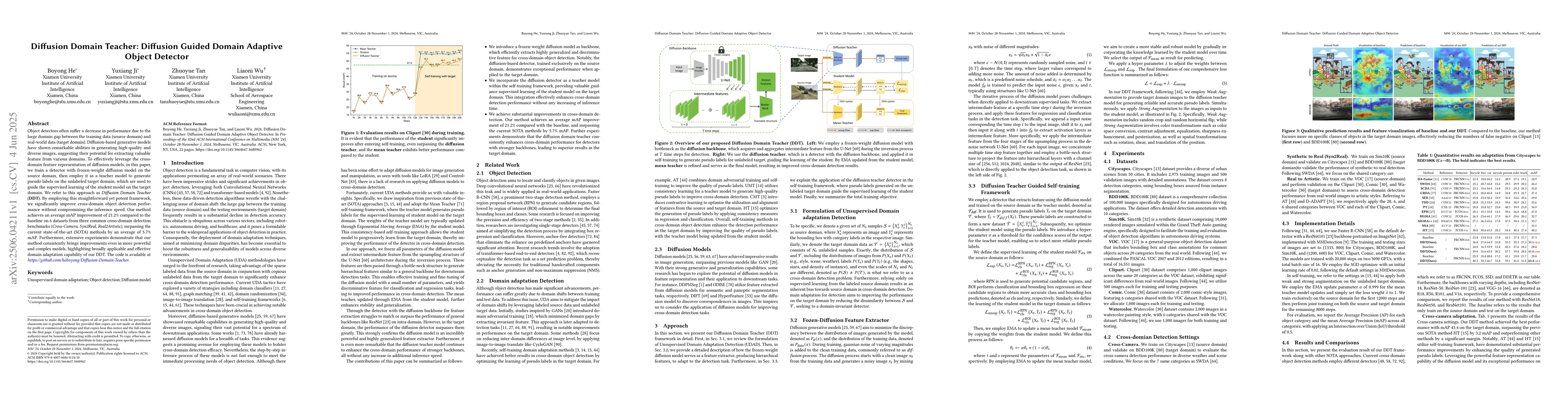 A new method called Diffusion Domain Teacher improves cross-domain object detection performance by 21.2% using a diffusion-based generative model as a teacher to guide supervised learning on the target domain.