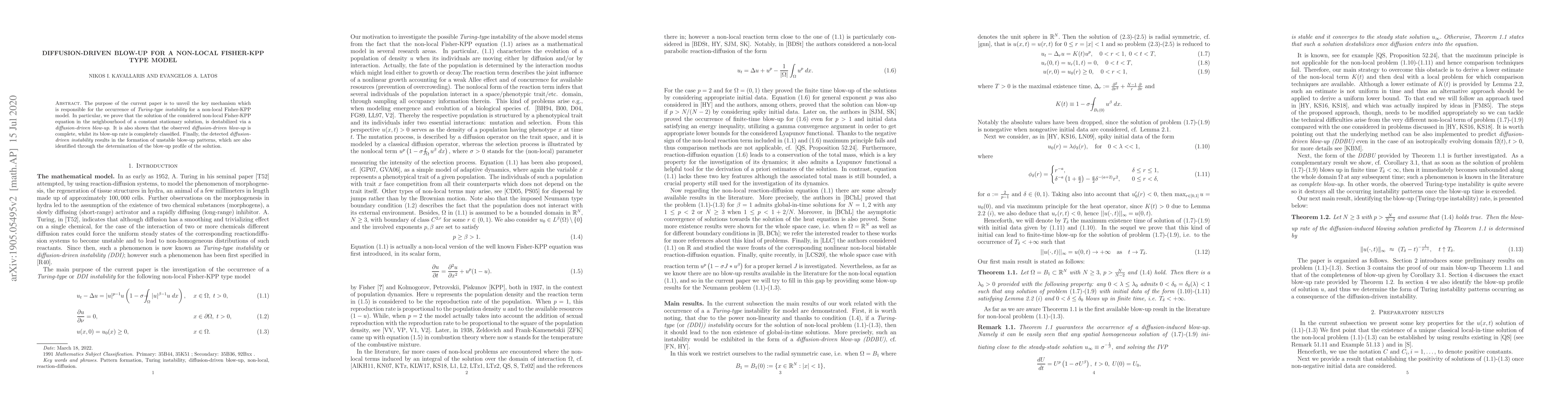 Researchers prove that a non-local Fisher-KPP model experiences a diffusion-driven blow-up, leading to unstable patterns and a complete destabilization of the solution near a constant stationary state.