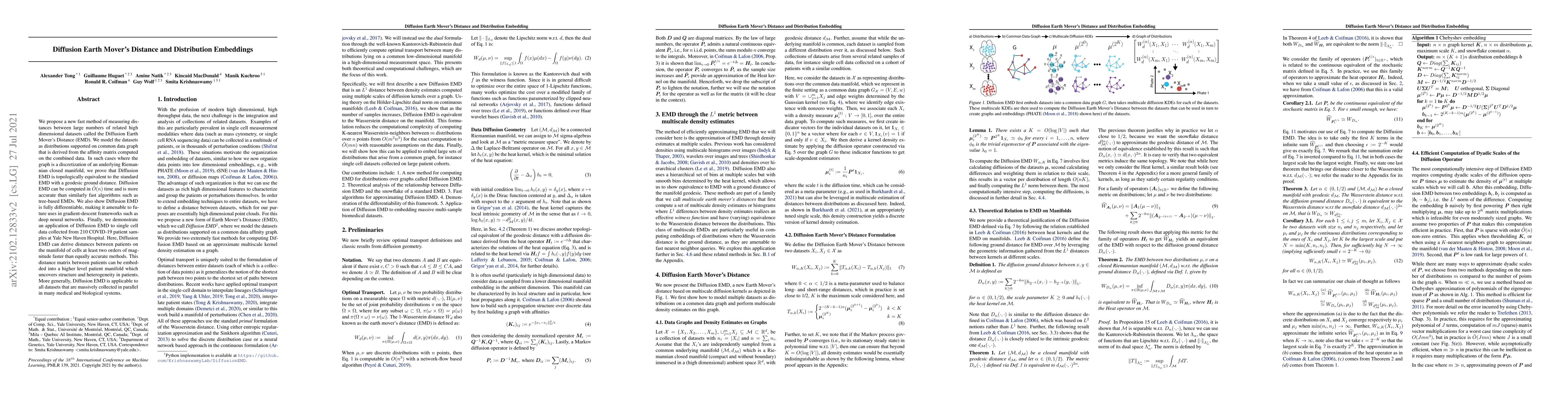 The paper proposes a fast method called Diffusion Earth Mover's Distance (EMD) for measuring distances between high-dimensional datasets, which is more accurate and faster than existing algorithms. It is applicable to medical and biological datasets, as demonstrated by its use on single-cell data from COVID-19 patients.