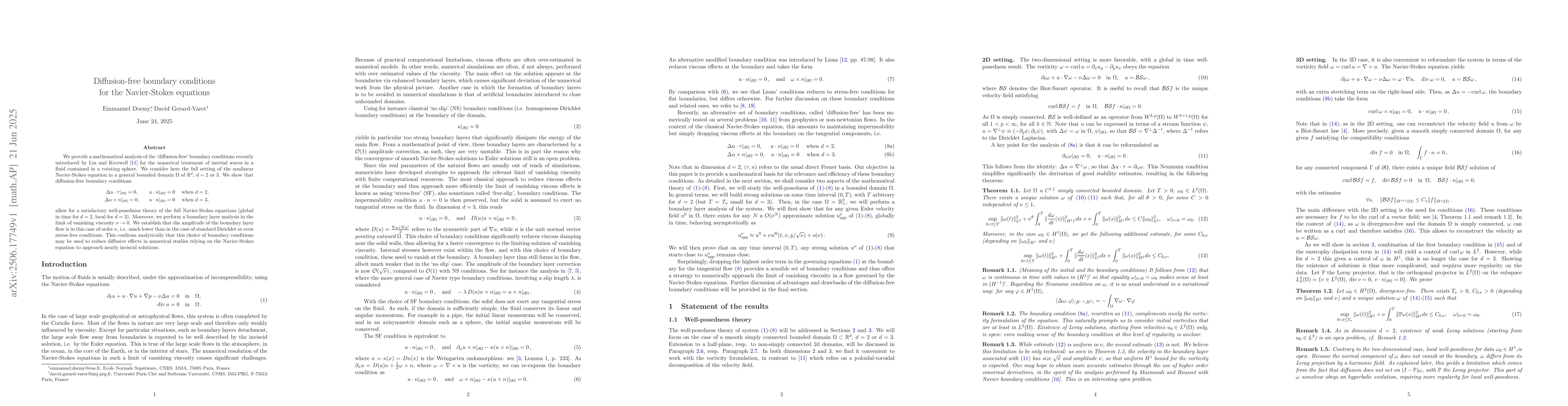 This paper analyzes 'diffusion-free' boundary conditions for Navier-Stokes equations in bounded domains, demonstrating their effectiveness in reducing diffusive effects for numerical solutions of nearly inviscid fluid flows. The conditions ensure well-posedness globally in 2D and locally in 3D, with a boundary layer of order ν when viscosity vanishes.