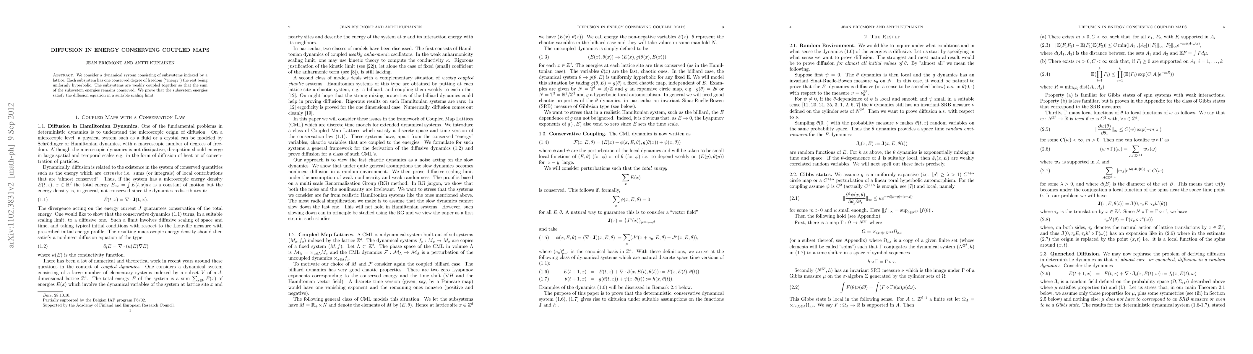This research proves that in a dynamical system of weakly coupled subsystems, each with one conserved energy degree of freedom, the subsystem energies follow the diffusion equation in a specific scaling limit.