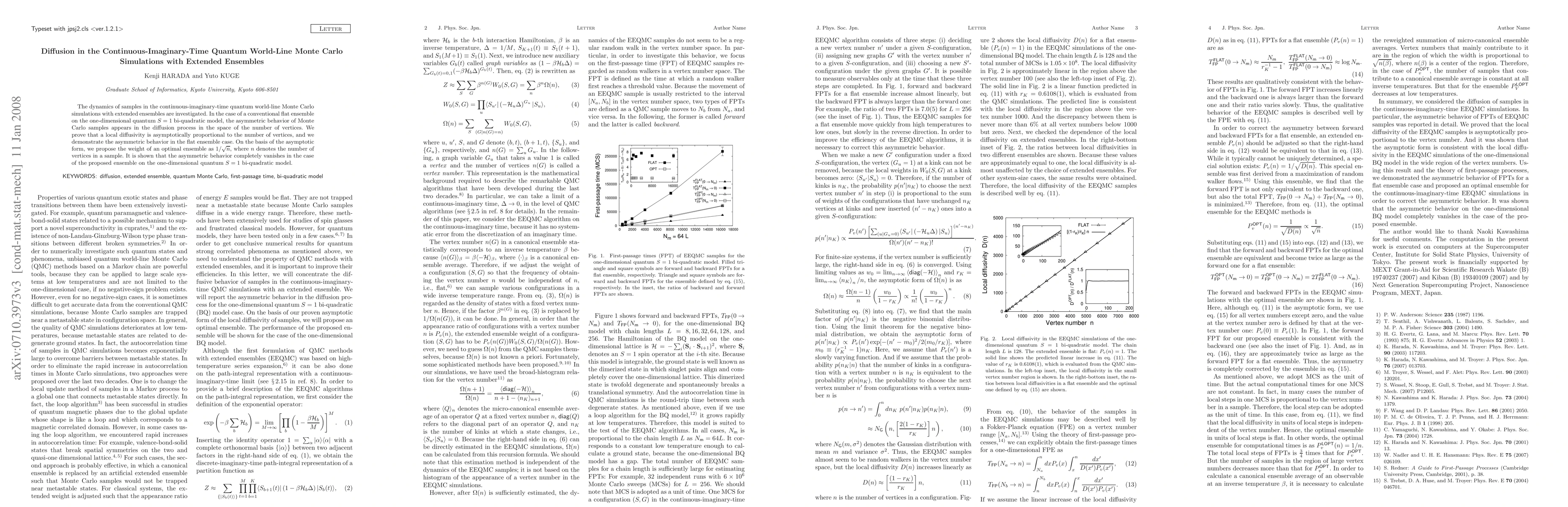 The dynamics of samples in the continuous-imaginary-time quantum world-line Monte Carlo simulations with extended ensembles are investigated. In the case of a conventional flat ensemble on the one-dimensional quantum S=1 bi-quadratic model, the asymmetric behavior of Monte Carlo samples appears in the diffusion process in the space of the number of vertices. We prove that a local diffusivity is asymptotically proportional to the number of vertices, and we demonstrate the asymmetric behavior in the flat ensemble case. On the basis of the asymptotic form, we propose the weight of an optimal ensemble as $1/\sqrt{n}$, where $n$ denotes the number of vertices in a sample. It is shown that the asymmetric behavior completely vanishes in the case of the proposed ensemble on the one-dimensional quantum S=1 bi-quadratic model.