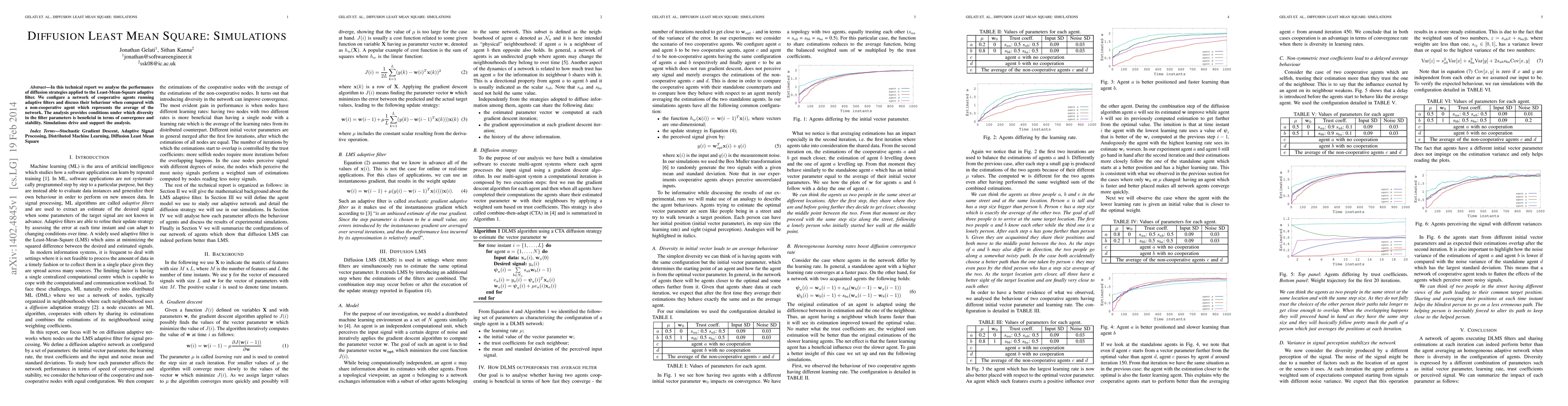 This paper evaluates the performance of diffusion strategies in Least-Mean-Square adaptive filters using a network of cooperative agents. Simulations show that diversity among filter parameters enhances convergence and stability compared to a non-cooperative agent.