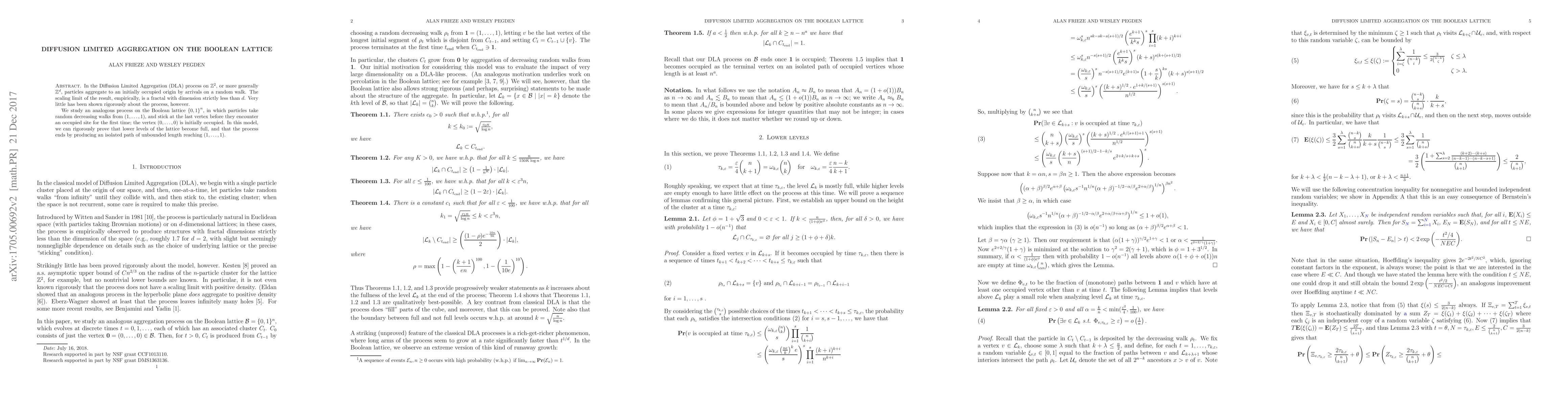 This paper investigates a variant of Diffusion Limited Aggregation on the Boolean lattice $\{0,1\}^n$, where particles perform decreasing random walks and stick upon encountering an occupied site. The authors rigorously prove that lower levels of the lattice fill up and the process concludes with an isolated path of unbounded length reaching $(1,\dots,1)$.