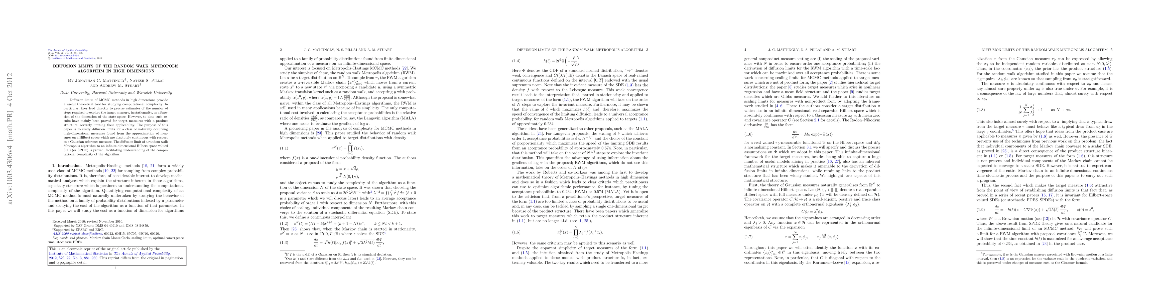 This paper proves a diffusion limit for a random walk Metropolis algorithm in high dimensions, allowing for estimates of the number of steps required to explore target measures, and expands its applicability beyond product-structured measures.