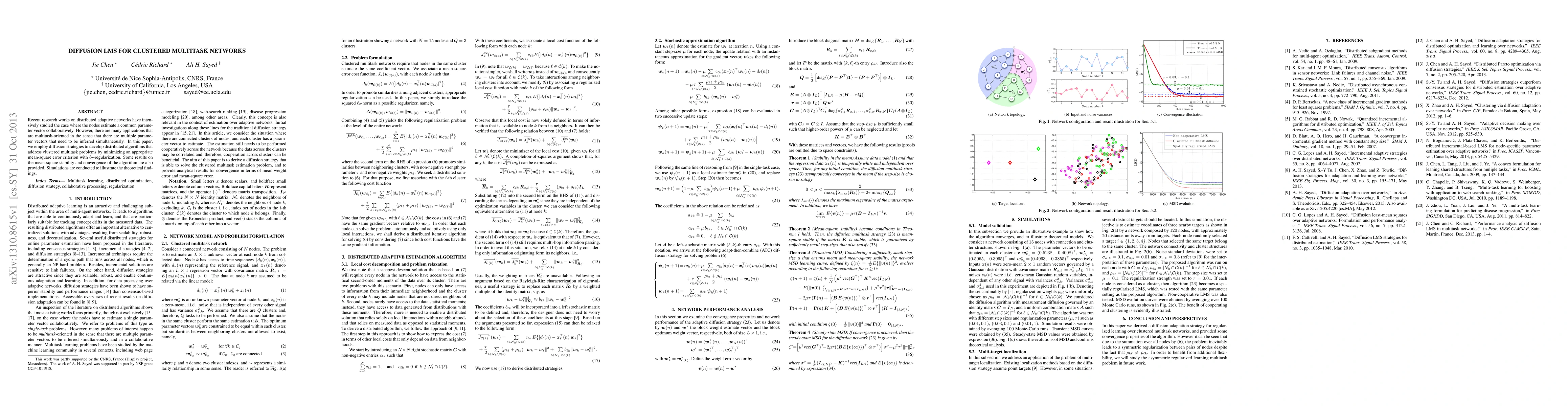 This paper develops distributed algorithms using diffusion strategies for clustered multitask networks, focusing on minimizing mean-square error with $\ell_2$-regularization. Theoretical results on stability and convergence are provided, supported by simulation results.