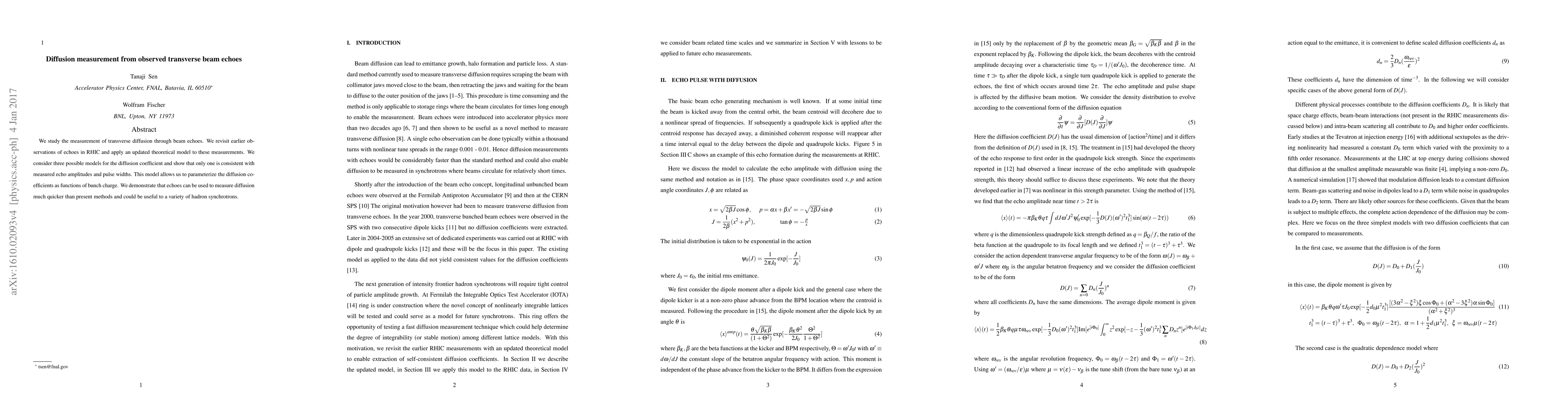 This research contributes to our understanding of beam dynamics and diffusion, which is crucial for optimizing particle acceleration and detection in high-energy physics experiments.
