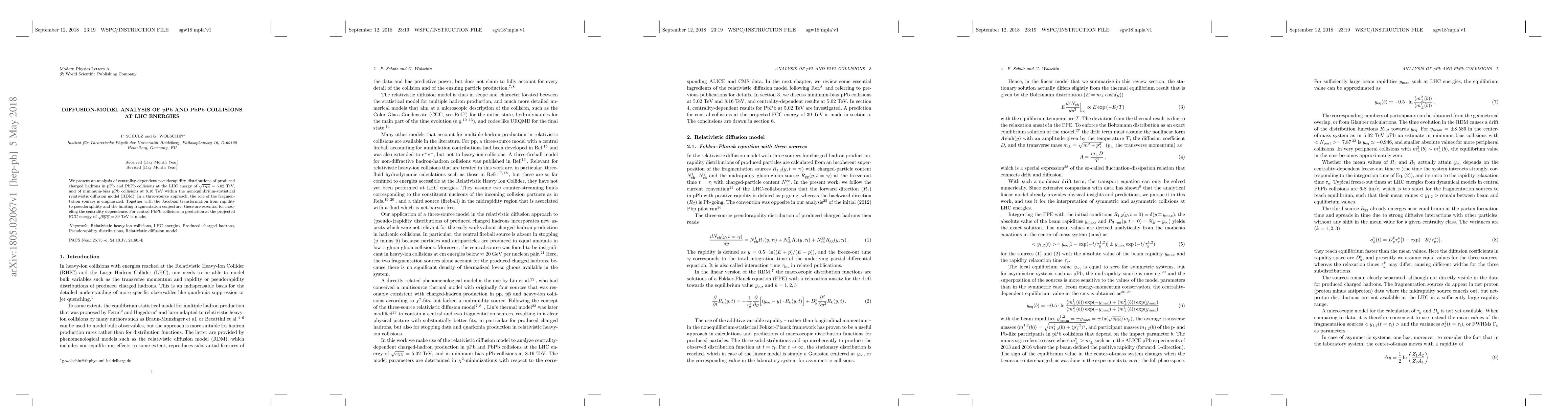We present an analysis of centrality-dependent pseudorapidity distributions of produced charged hadrons in pPb and PbPb collisions at the LHC energy of sqrt{s_NN}=5.02 TeV, and of minimum-bias pPb collisions at 8.16 TeV within the nonequilibrium-statistical relativistic diffusion model (RDM). In a three-source approach, the role of the fragmentation sources is emphasized. Together with the Jacobian transformation from rapidity to pseudorapidity and the limiting fragmentation conjecture, these are essential for modeling the centrality dependence. For central PbPb collisions, a prediction at the projected FCC energy of sqrt{s_NN}=39 TeV is made.