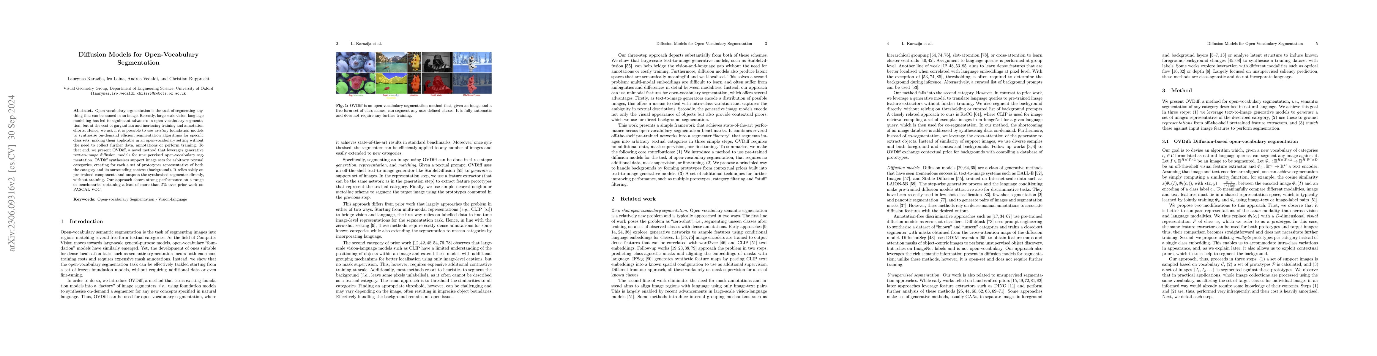 This paper introduces a zero-shot open-vocabulary segmentation method leveraging large-scale text-to-image diffusion models to generate support images for new categories, avoiding ambiguity and improving localization. The approach achieves superior performance on benchmarks without requiring additional training.