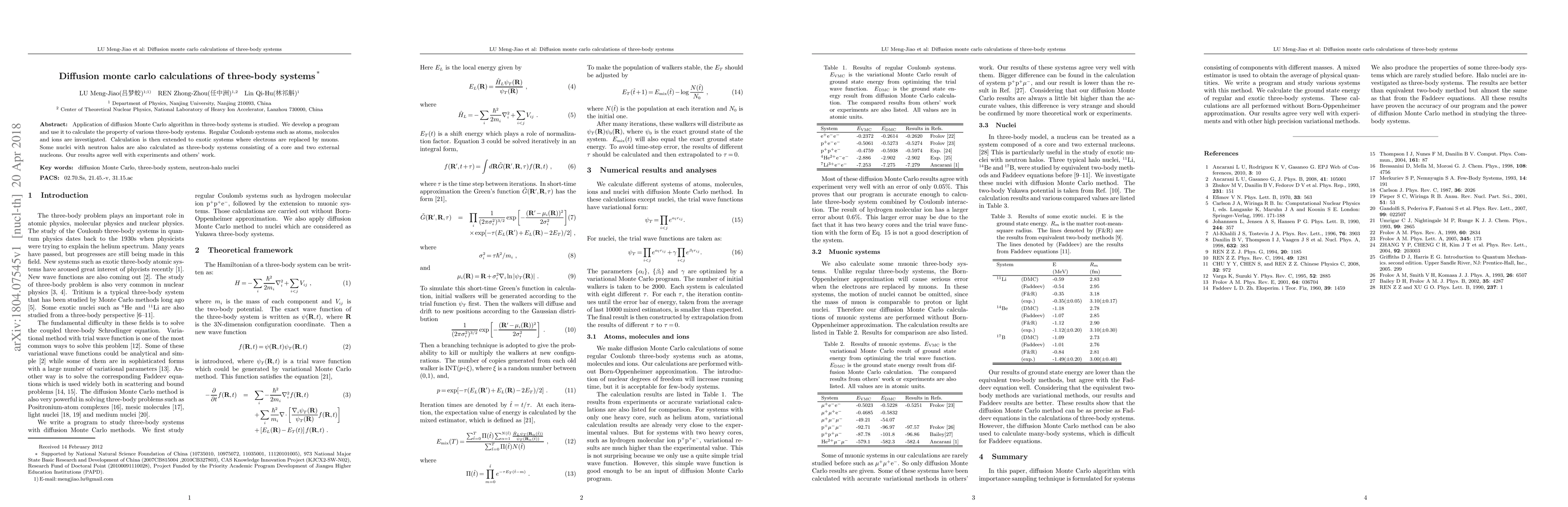 The diffusion Monte Carlo method is applied to three-bodysystems for the first time, demonstrating its potential in studying these systems.