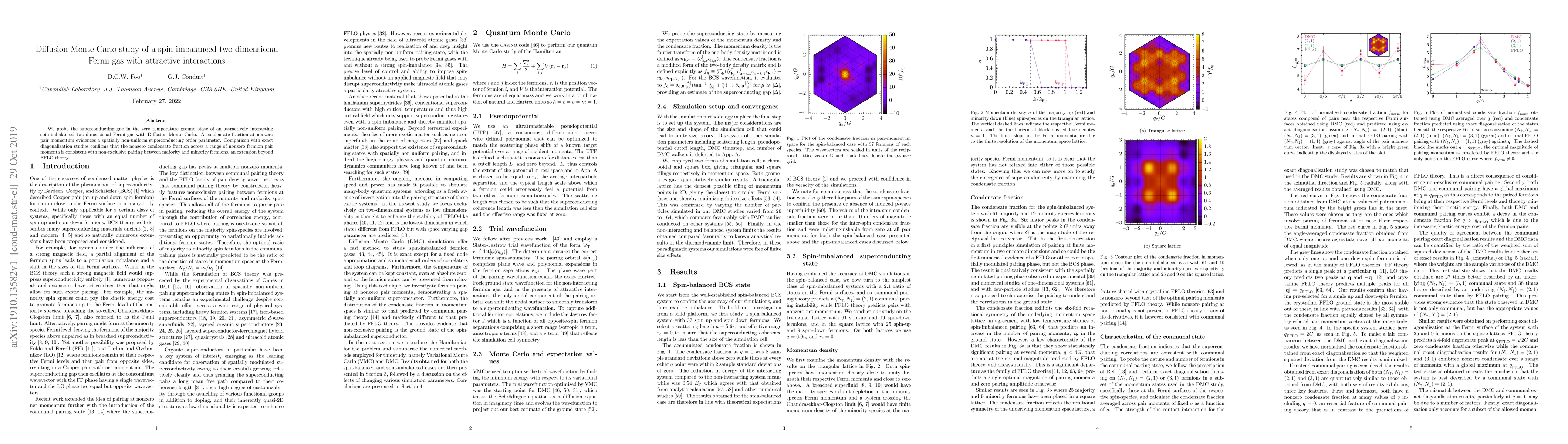 This study uses Diffusion Monte Carlo to investigate the superconducting gap in a spin-imbalanced two-dimensional Fermi gas with attractive interactions, revealing a spatially non-uniform order parameter and a condensate fraction at nonzero pair momentum, extending beyond FFLO theory. Comparisons with exact diagonalization confirm non-exclusive pairing between majority and minority fermions.