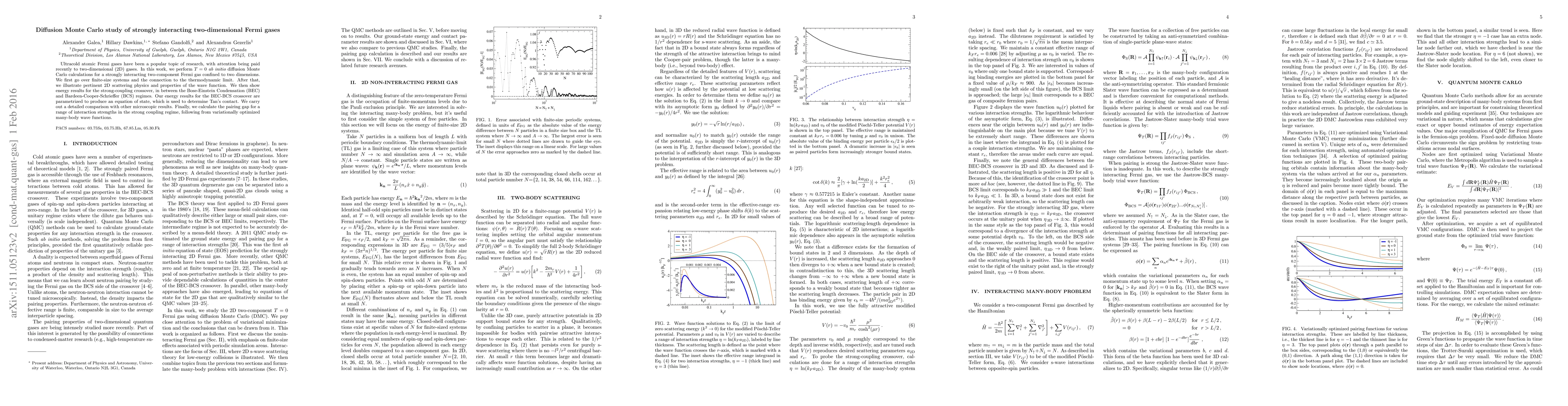 Ultracold atomic Fermi gases have been a popular topic of research, with attention being paid recently to two-dimensional (2D) gases. In this work, we perform T=0 ab initio diffusion Monte Carlo calculations for a strongly interacting two-component Fermi gas confined to two dimensions. We first go over finite-size systems and the connection to the thermodynamic limit. After that, we illustrate pertinent 2D scattering physics and properties of the wave function. We then show energy results for the strong-coupling crossover, in between the Bose-Einstein Condensation (BEC) and Bardeen-Cooper-Schrieffer (BCS) regimes. Our energy results for the BEC-BCS crossover are parametrized to produce an equation of state, which is used to determine Tan's contact. We carry out a detailed comparison with other microscopic results. Finally, we calculate the pairing gap for a range of interaction strengths in the strong coupling regime, following from variationally optimized many-body wave functions.