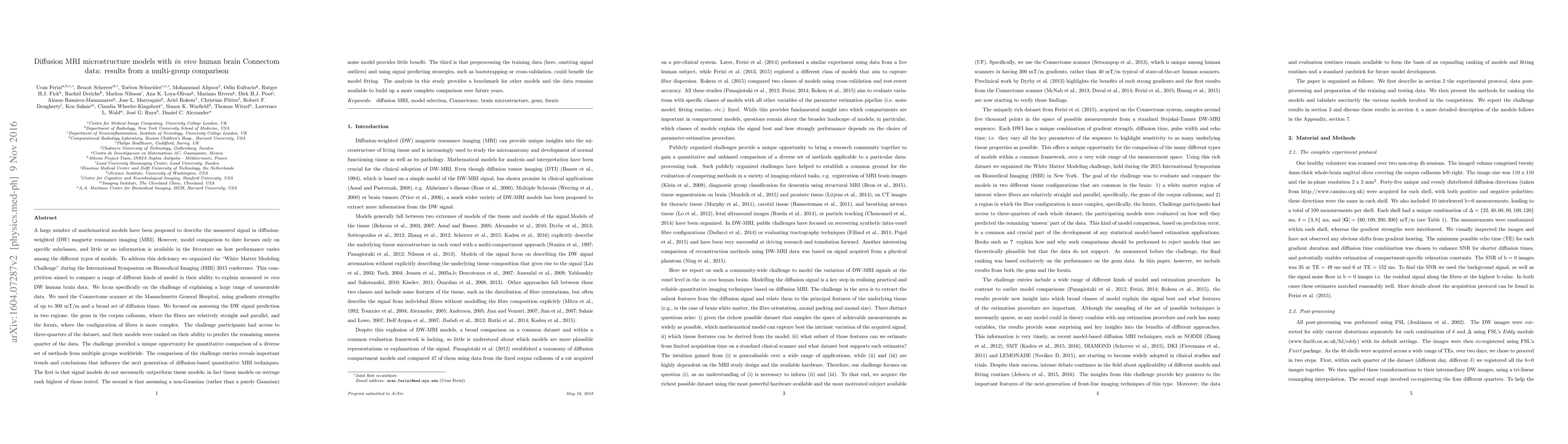 This paper details a competition to compare various diffusion-weighted MRI models using in vivo human brain data from the Connectom project, focusing on the genu of the corpus callosum and the fornix. The results provide insights into which models best predict unseen data, offering a benchmark for future diffusion MRI model evaluations.