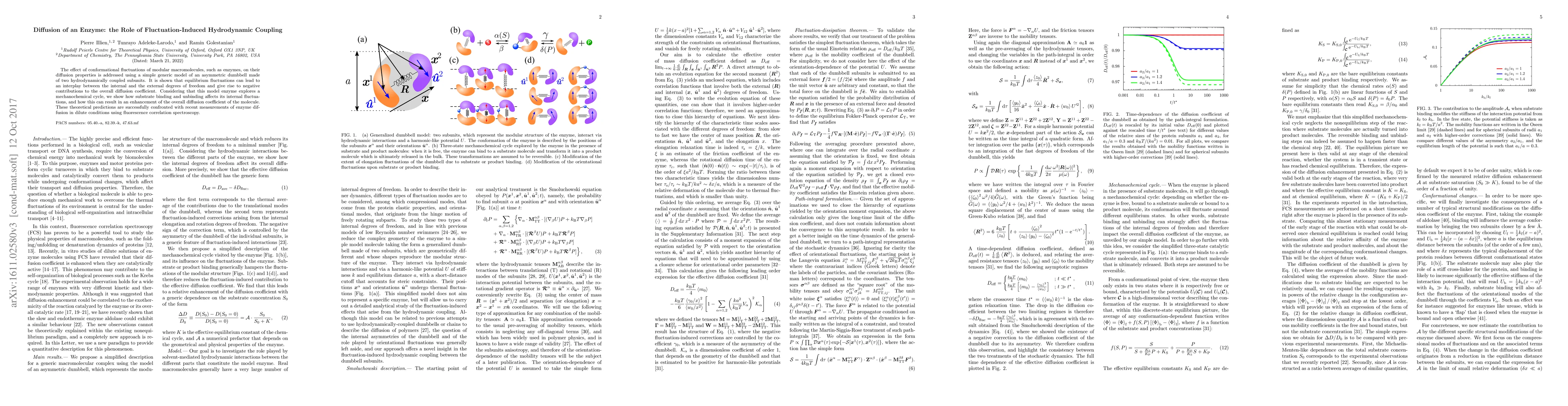 Research shows that enzyme diffusion is influenced by its internal conformational fluctuations, which can either hinder or enhance movement, depending on substrate binding and unbinding. The study uses a simplified model to make predictions that match recent experimental measurements using fluorescence correlation spectroscopy.