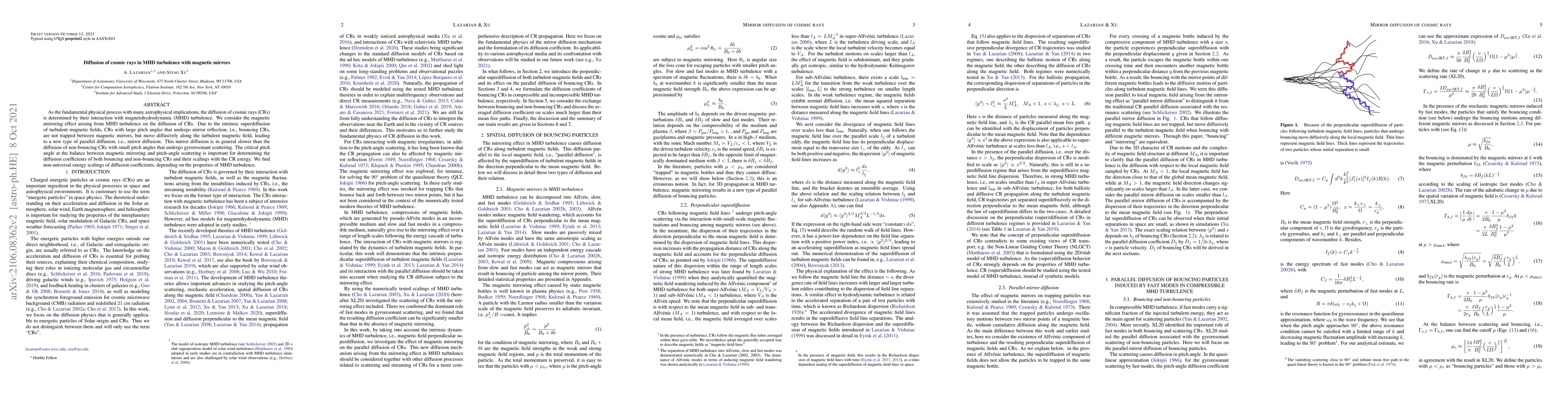 This paper investigates how cosmic rays interact with magnetohydrodynamic turbulence, focusing on the effect of magnetic mirrors. It finds that bouncing cosmic rays experience a distinct type of parallel diffusion called mirror diffusion, which is generally slower than the diffusion of non-bouncing cosmic rays. The study highlights the importance of the critical pitch angle in determining the diffusion coefficients and their energy scalings.