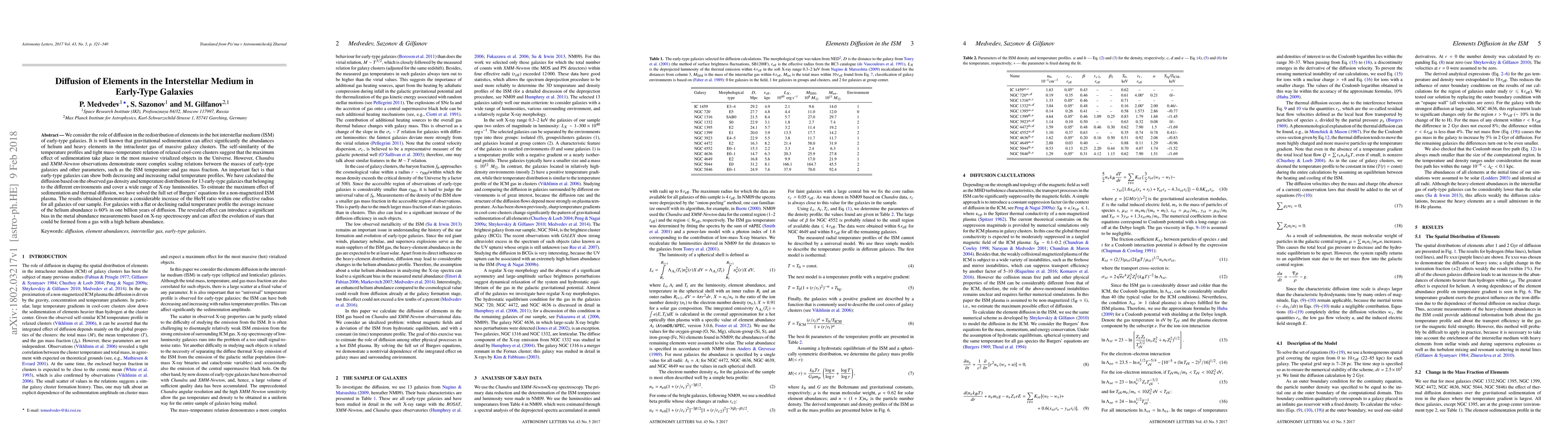 This paper investigates the diffusion of elements in the hot interstellar medium of early-type galaxies, finding that diffusion significantly increases the helium-to-hydrogen ratio within one effective radius. The study highlights that this effect can introduce biases in metal abundance measurements and influence the evolution of stars formed from high helium abundance gas.