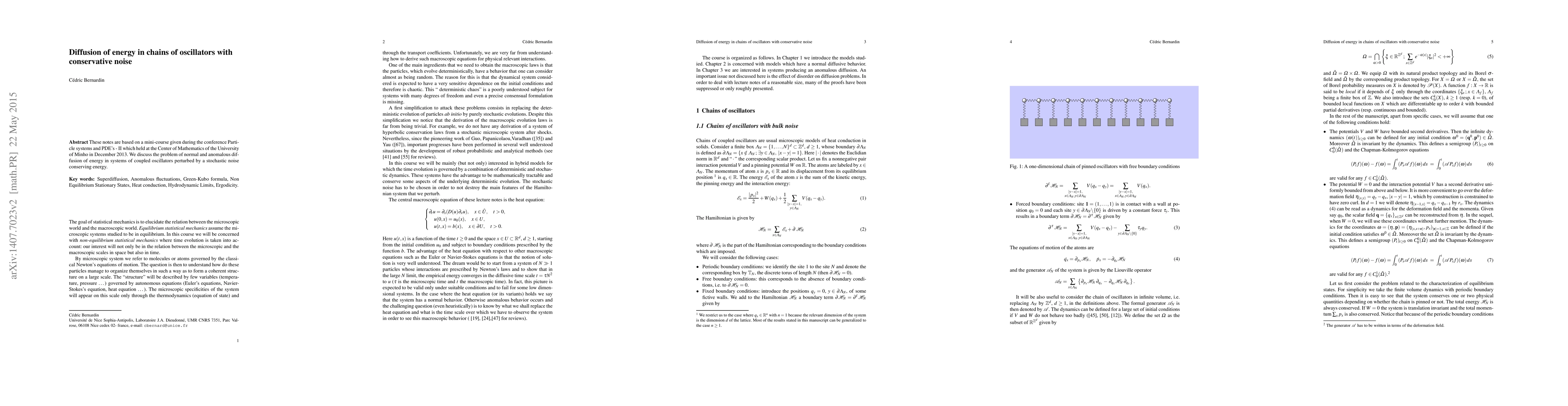 These notes are based on a mini-course given during the conference Particle systems and PDE's - II which held at the Center of Mathematics of the University of Minho in December 2013. We discuss the problem of normal and anomalous diffusion of energy in systems of coupled oscillators perturbed by a stochastic noise conserving energy.