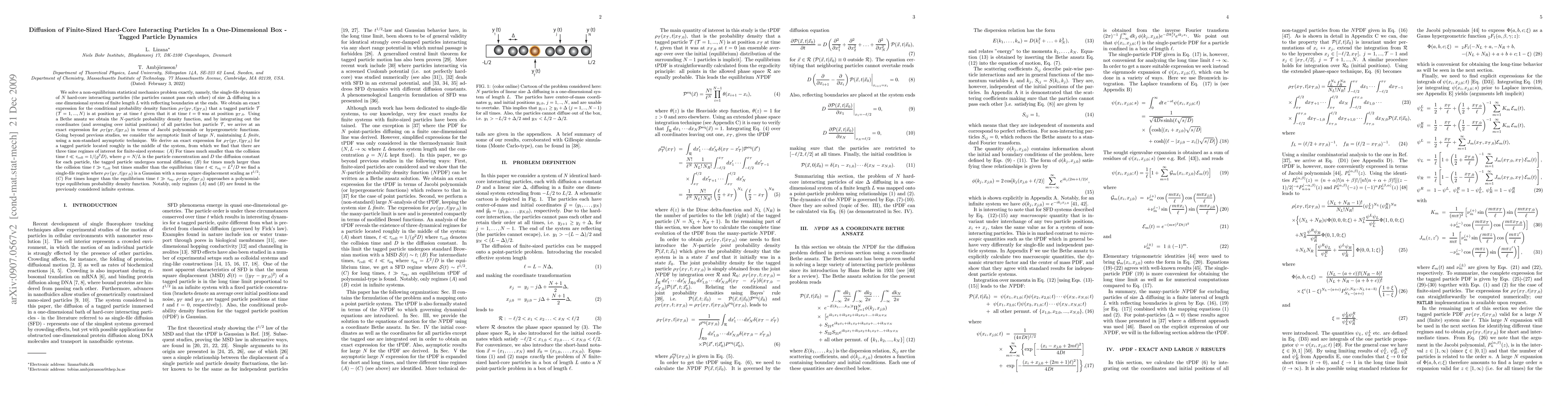 This paper exactly solves the dynamics of N hard-core interacting particles in a one-dimensional box, deriving an expression for the conditional probability of a tagged particle's position over time. It identifies three distinct time regimes: normal diffusion, a single-file Gaussian regime, and a polynomial equilibrium regime.