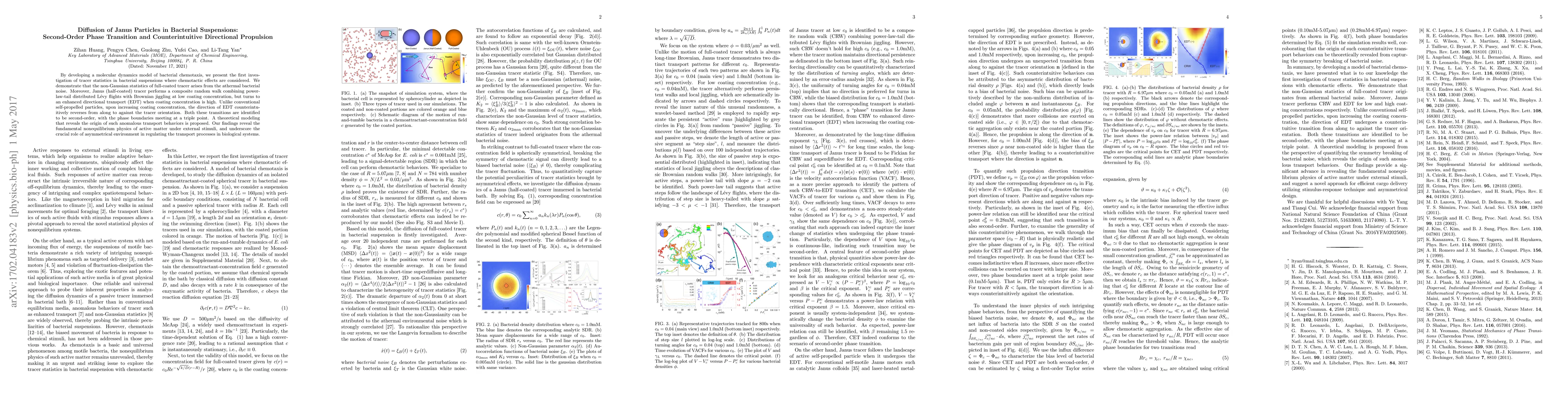This paper investigates the diffusion behavior of Janus particles in bacterial suspensions, revealing non-Gaussian tracer statistics due to bacterial noise. It shows that Janus particles exhibit enhanced directional transport (EDT) at high coating concentrations, with a counterintuitive reversal in the direction of EDT, highlighting a second-order phase transition and the importance of asymmetrical environments in biological transport processes.