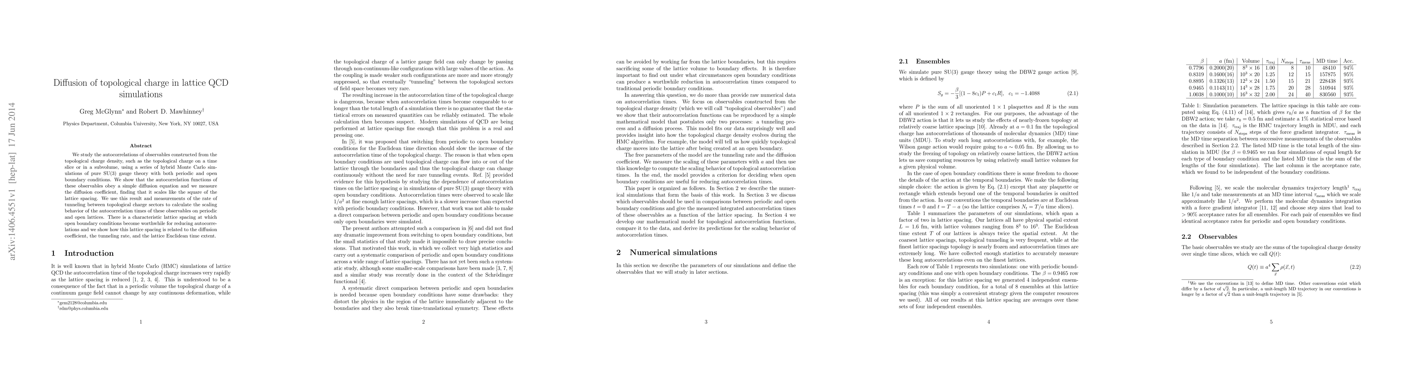 Researchers used lattice QCD simulations to study how a topological charge density diffuses across space, finding that its diffusion scales with the square of the lattice spacing and identifying a critical lattice spacing for reducing autocorrelations.
