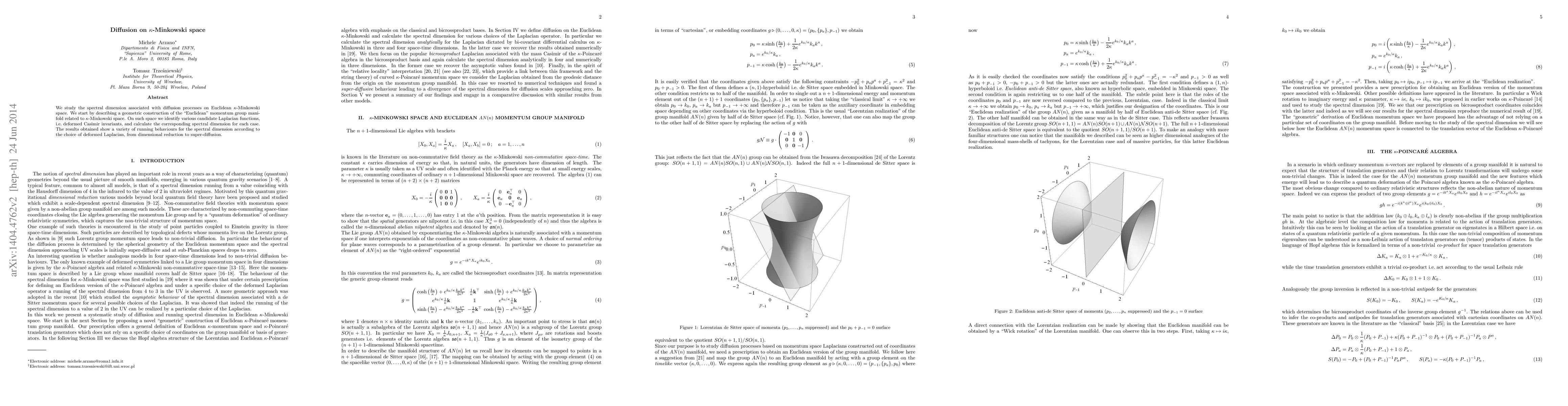 This paper investigates the spectral dimension of diffusion processes on $\kappa$-Minkowski space, constructing a "Euclidean" momentum group manifold and exploring various deformed Laplacians. The study reveals diverse behaviors in the spectral dimension, ranging from dimensional reduction to super-diffusion.