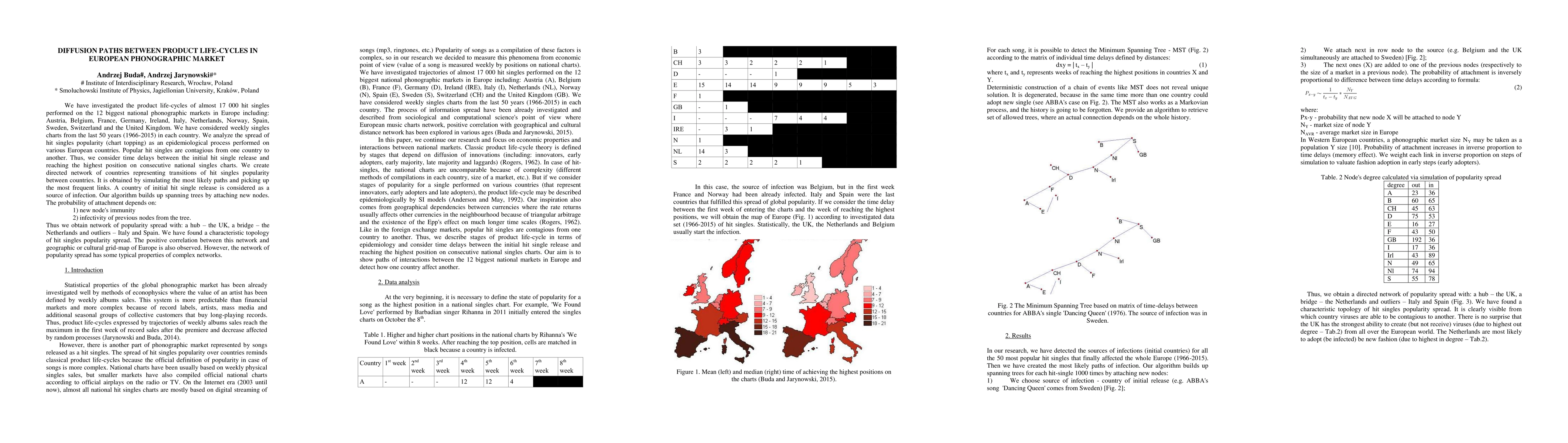 Researchers analyzed 17,000 hit singles in 12 European countries over 50 years to find patterns in their popularity spread, identifying a hub (UK) and bridge (Netherlands) with outliers like Italy and Spain.