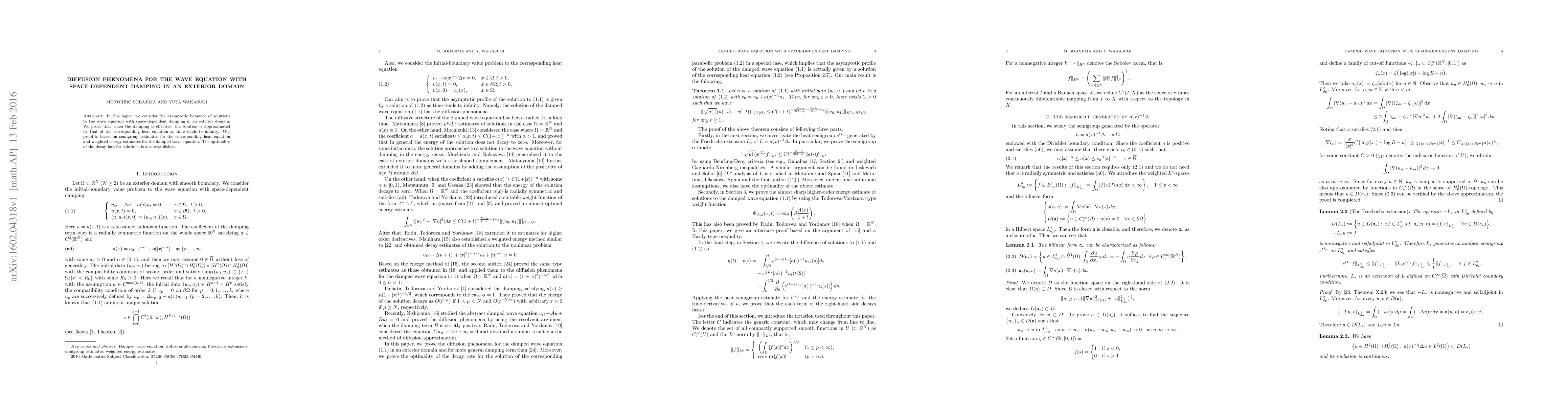 This paper investigates the asymptotic behavior of solutions to the wave equation with space-dependent damping in an exterior domain, proving that effective damping leads to convergence to the corresponding heat equation solution as time approaches infinity. The proof utilizes semigroup estimates and weighted energy estimates.