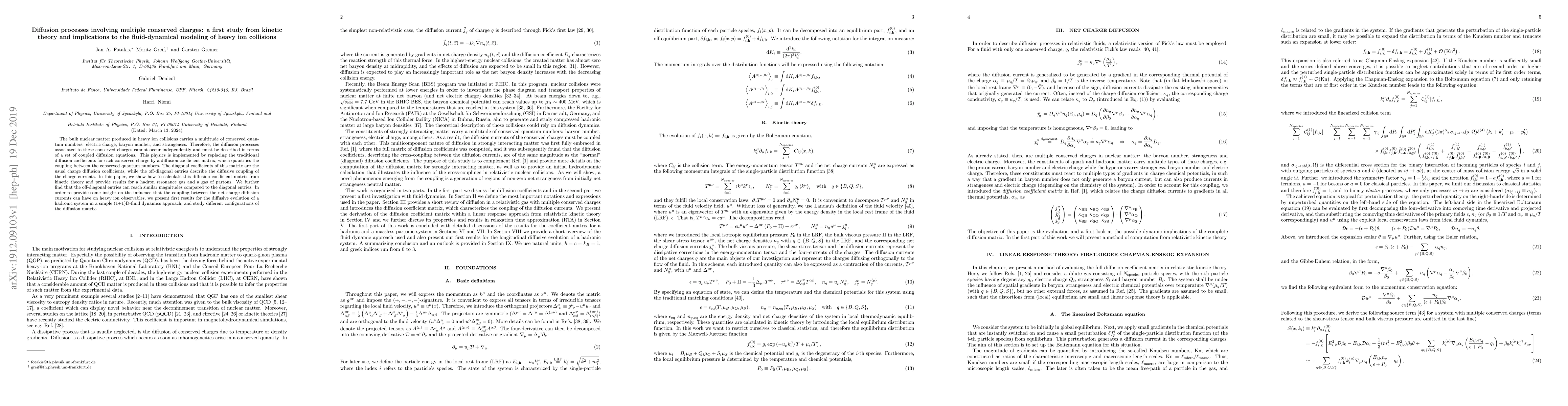 This paper investigates coupled diffusion processes for conserved charges in heavy ion collisions using kinetic theory, introducing a diffusion coefficient matrix to quantify interactions between electric charge, baryon number, and strangeness. Initial fluid-dynamical modeling results suggest significant coupling effects on observables.