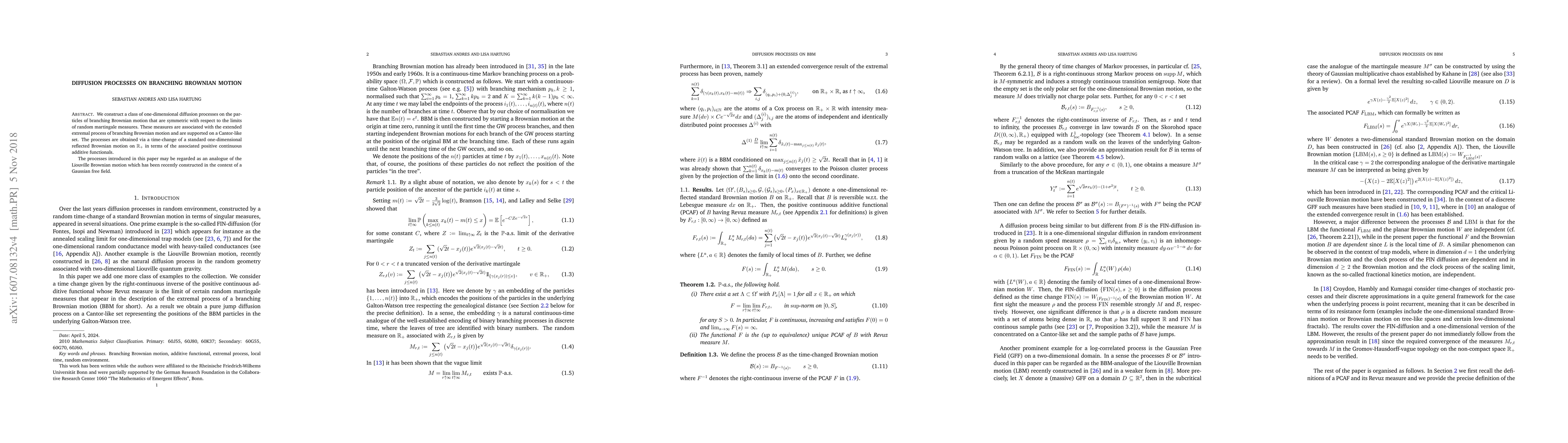 The research constructs diffusion processes on the particles of branching Brownian motion, symmetric with respect to limits of random martingale measures. These measures are associated with the extended extremal process of branching Brownian motion and supported on a Cantor-like set, obtained via a time-change of a standard one-dimensional reflected Brownian motion.