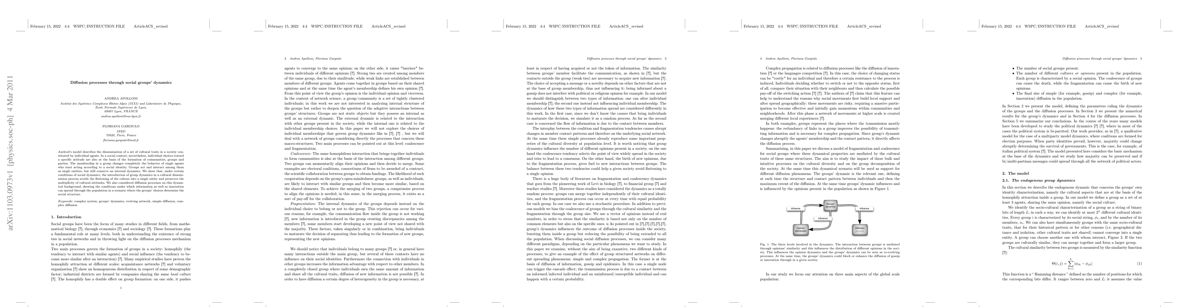 A research paper explores how social groups' dynamics influence cultural dissemination, showing that group dynamics preserve the multiplicity of cultural attitudes under certain conditions. It finds conditions for information and innovation to spread through a population with dynamic social structures.