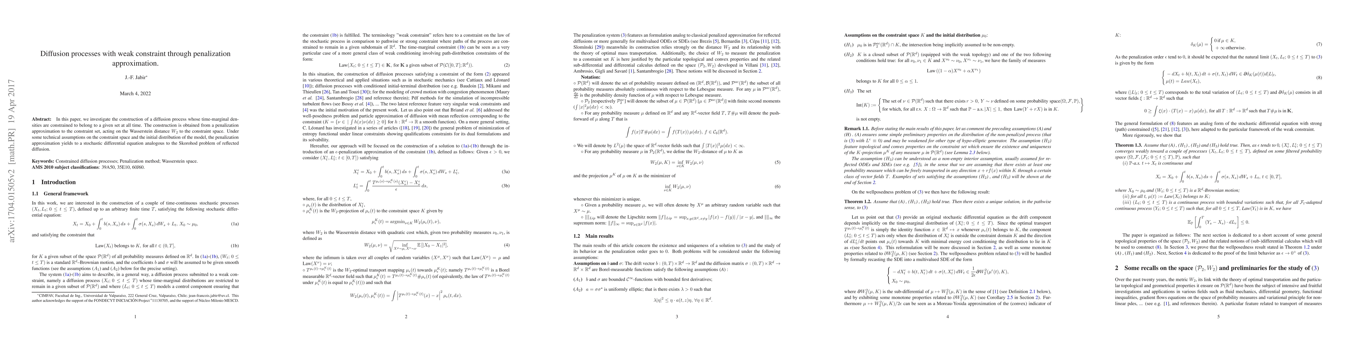 Researchers develop a method to create diffusion processes with constrained time-marginal densities using penalization approximation, which yields a stochastic differential equation similar to the Skorohod problem of reflected diffusion.
