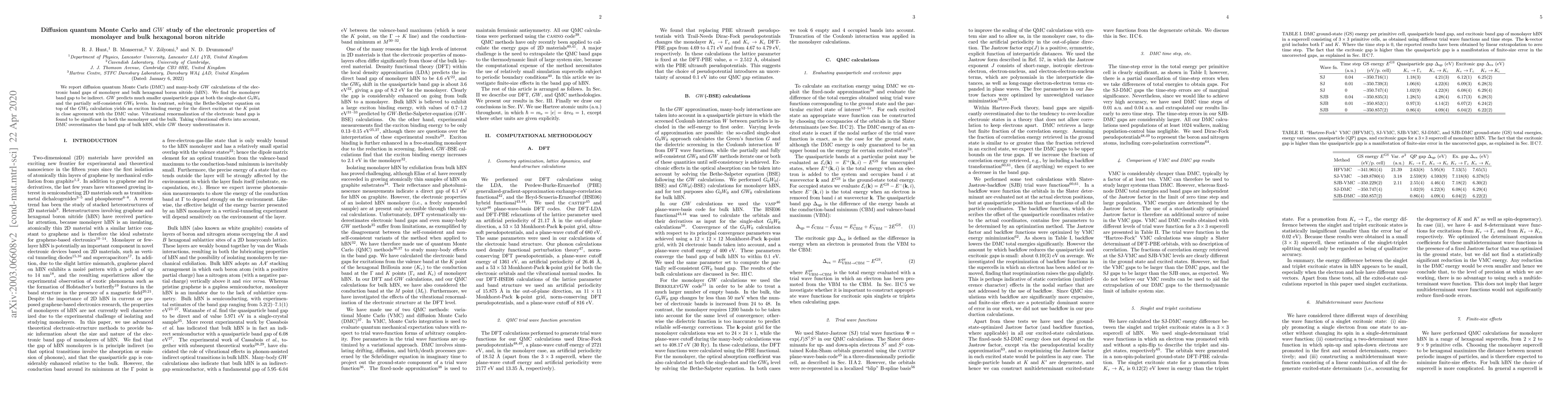 Diffusion quantum Monte Carlo (DMC) and $GW$ calculations reveal that the electronic band gap of monolayer hBN is indirect, while $GW$ predicts smaller quasiparticle gaps. The Bethe-Salpeter equation applied to $GW_0$ yields an exciton binding energy matching DMC values, highlighting significant vibrational renormalization effects in both monolayer and bulk hBN.