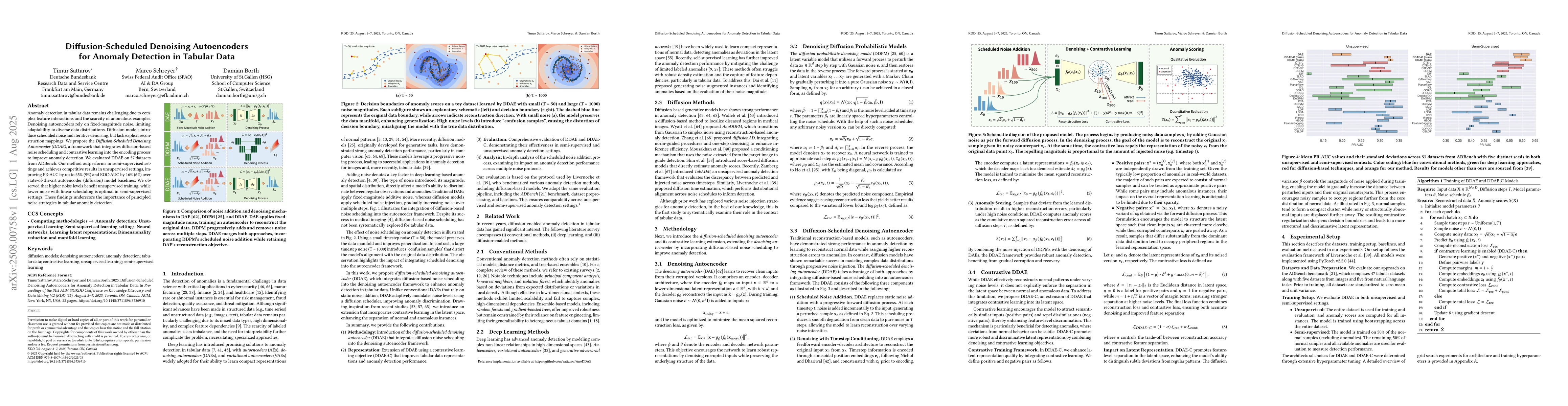 Anomaly detection in tabular data remains challenging due to complex feature interactions and the scarcity of anomalous examples. Denoising autoencoders rely on fixed-magnitude noise, limiting adaptability to diverse data distributions. Diffusion models introduce scheduled noise and iterative denoising, but lack explicit reconstruction mappings. We propose the Diffusion-Scheduled Denoising Autoencoder (DDAE), a framework that integrates diffusion-based noise scheduling and contrastive learning into the encoding process to improve anomaly detection. We evaluated DDAE on 57 datasets from ADBench. Our method outperforms in semi-supervised settings and achieves competitive results in unsupervised settings, improving PR-AUC by up to 65% (9%) and ROC-AUC by 16% (6%) over state-of-the-art autoencoder (diffusion) model baselines. We observed that higher noise levels benefit unsupervised training, while lower noise with linear scheduling is optimal in semi-supervised settings. These findings underscore the importance of principled noise strategies in tabular anomaly detection.