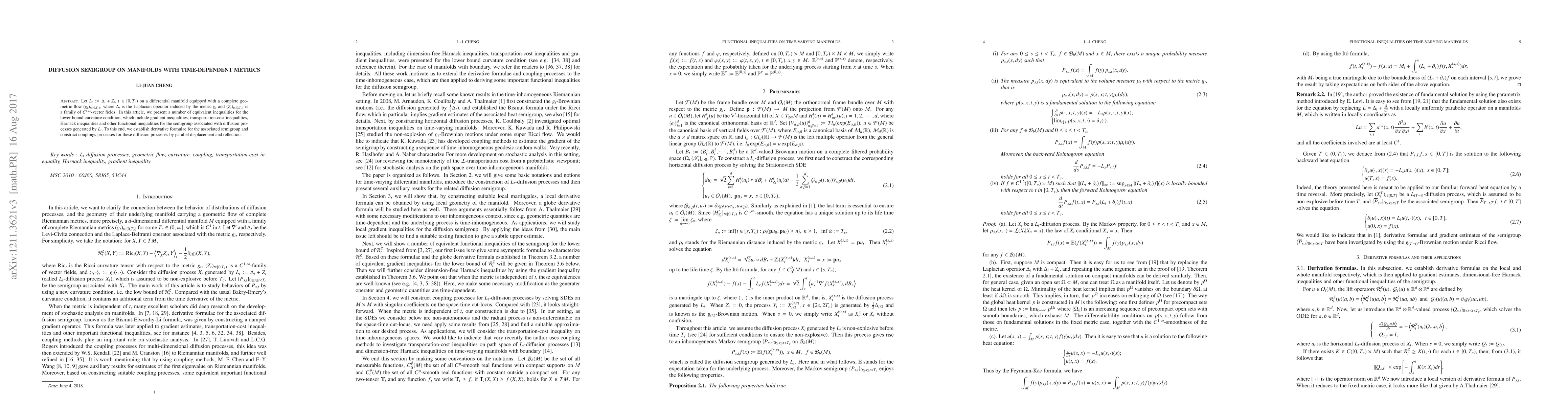 Let $L_t:=\Delta_t +Z_t $, $t\in [0,T_c)$ on a differential manifold equipped with time-depending complete Riemannian metric $(g_t)_{t\in [0,T_c)}$, where $\Delta_t$ is the Laplacian induced by $g_t$ and $(Z_t)_{t\in [0,T_c)}$ is a family of $C^{1,1}$-vector fields. We first present some explicit criteria for the non-explosion of the diffusion processes generated by $L_t$; then establish the derivative formula for the associated semigroup; and finally, present a number of equivalent semigroup inequalities for the curvature lower bound condition, which include the gradient inequalities, transportation-cost inequalities, Harnack inequalities and functional inequalities for the diffusion semigroup.