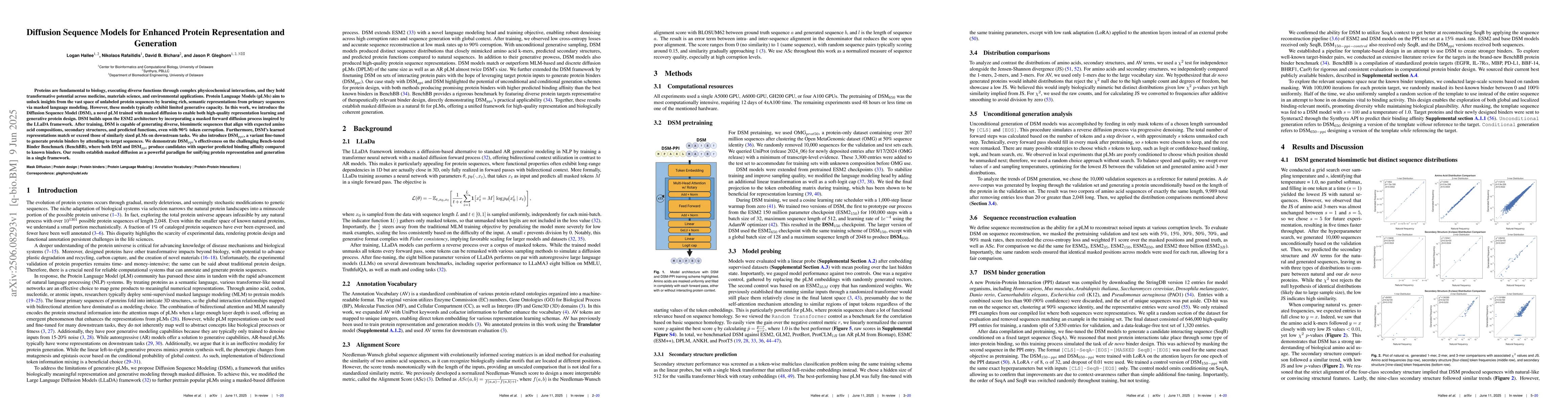 A new model, Diffusion Sequence Model (DSM), combines representation learning and protein generation through masked diffusion, producing diverse and accurate biomimetic sequences. DSM outperforms existing models on various tasks, including generating protein binders with superior predicted binding affinity.