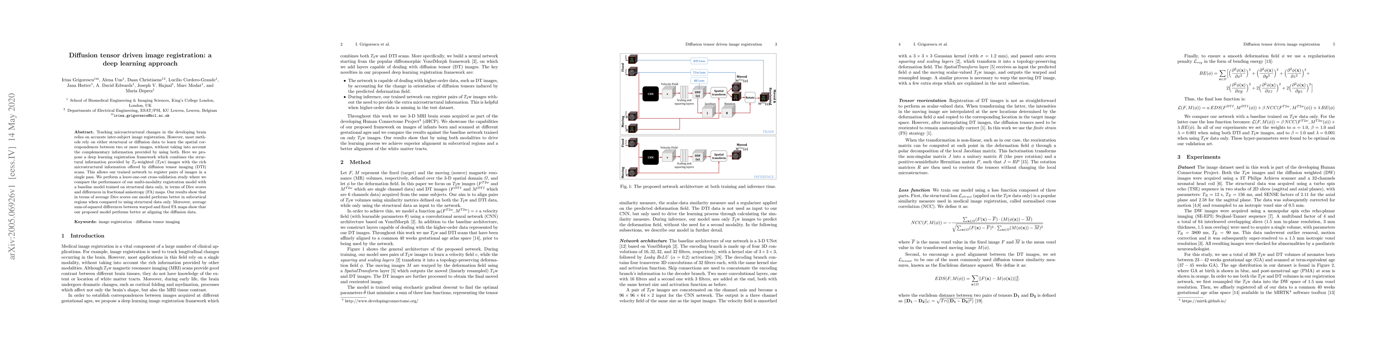 This paper proposes a deep learning framework for inter-subject image registration that integrates T2-weighted images and diffusion tensor imaging data to track microstructural changes in the brain. The study demonstrates improved performance in subcortical region registration and better alignment of diffusion data compared to models using structural data alone.