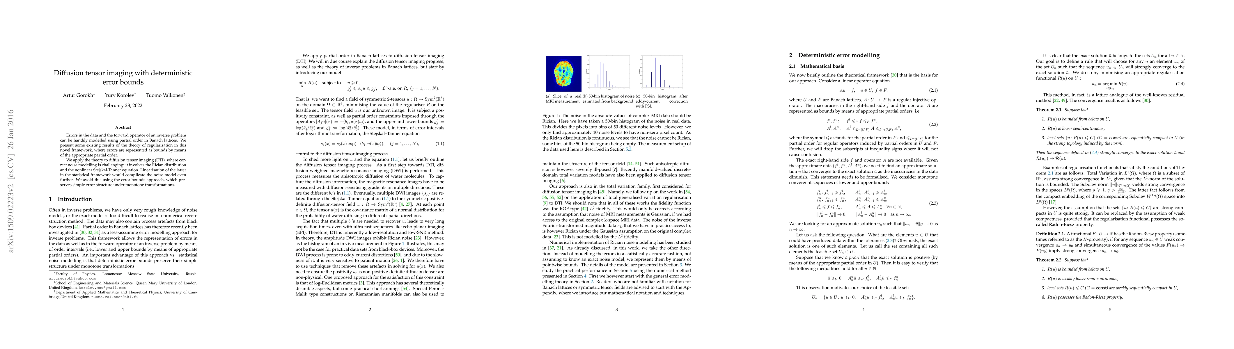 This paper applies a novel framework to Diffusion Tensor Imaging (DTI), using partial order in Banach lattices to model errors and establish deterministic error bounds, simplifying noise modeling and preserving its structure under monotone transformations.