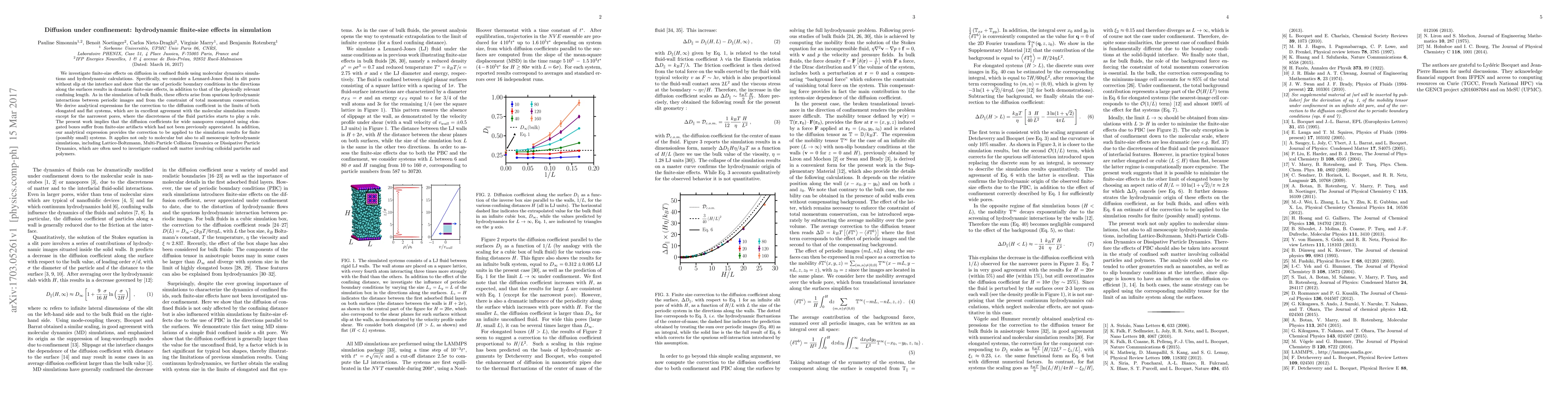 This paper investigates finite-size effects on diffusion in confined fluids using molecular dynamics and hydrodynamic calculations, revealing significant artifacts in simulations due to periodic boundary conditions. Analytical expressions for diffusion coefficient corrections are derived and shown to align well with simulation results, except in the narrowest pores.