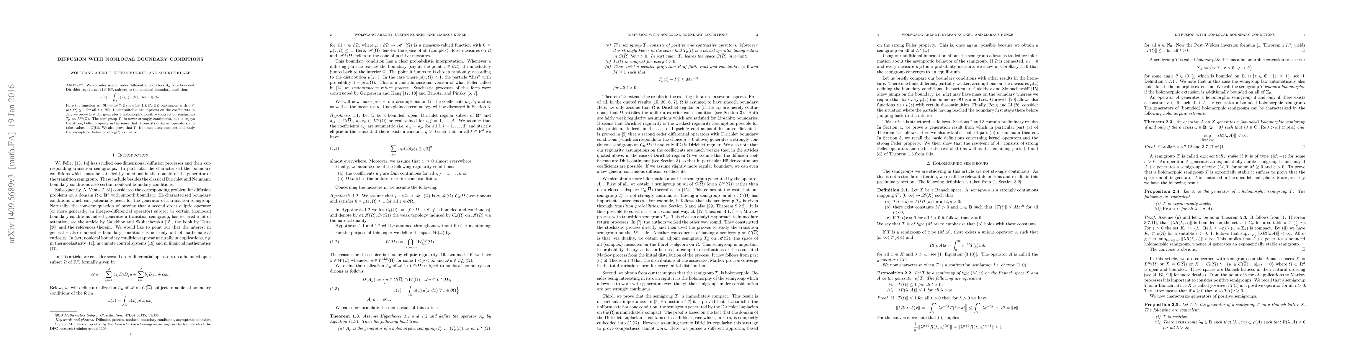 We consider second order differential operators $A_\mu$ on a bounded, Dirichlet regular set $\Omega \subset \mathbb{R}^d$, subject to the nonlocal boundary conditions \[ u(z) = \int_\Omega u(x)\, \mu (z, dx)\quad \mbox{for } z \in \partial \Omega. \] Here the function $\mu : \partial\Omega \to \mathscr{M}^+(\Omega)$ is $\sigma (\mathscr{M} (\Omega), C_b(\Omega))$-continuous with $0\leq \mu(z,\Omega) \leq 1$ for all $z\in \partial \Omega$. Under suitable assumptions on the coefficients in $A_\mu$, we prove that $A_\mu$ generates a holomorphic positive contraction semigroup $T_\mu$ on $L^\infty(\Omega)$. The semigroup $T_\mu$ is never strongly continuous, but it enjoys the strong Feller property in the sense that it consists of kernel operators and takes values in $C(\bar{\Omega})$. We also prove that $T_\mu$ is immediately compact and study the asymptotic behavior of $T_\mu(t)$ as $t \to \infty$.