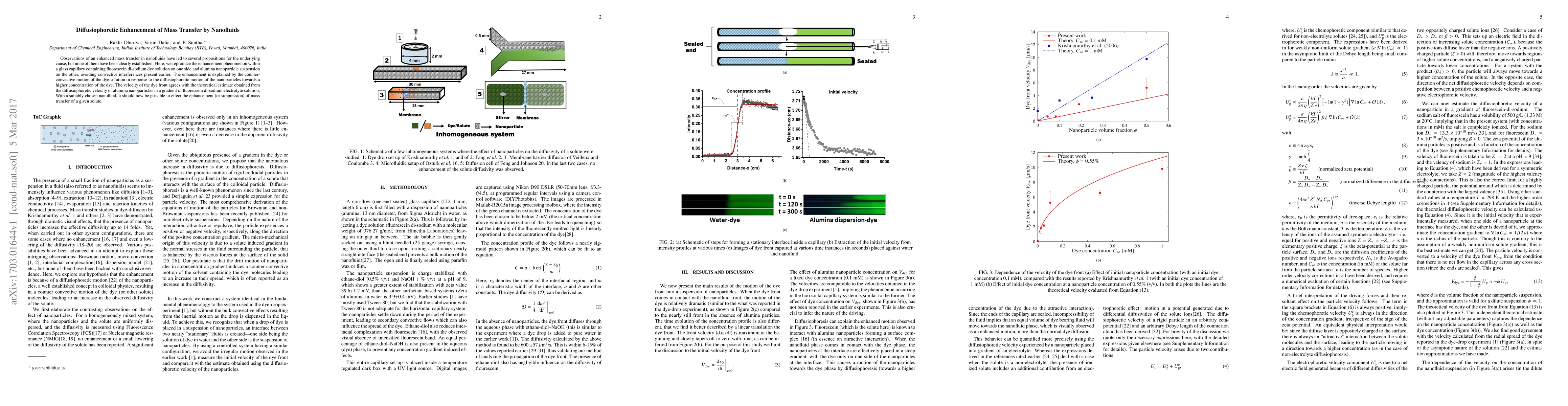 Observations of an enhanced mass transfer in nanofluids have led to several propositions for the underlying cause, but none of them have been clearly established. Here, we reproduce the enhancement phenomenon within a glass capillary containing fluorescein di-sodium dye solution on one side and alumina nanoparticle suspension on the other, avoiding convective interferences present earlier. The enhancement is explained by the counter-convective motion of the dye solution in response to the diffusiophoretic motion of the nanoparticles towards a higher concentration of the dye. The velocity of the dye front agrees with the theoretical estimate obtained from the diffusiophoretic velocity of alumina nanoparticles in a gradient of fluorescein di-sodium electrolyte solution. With a suitably chosen nanofluid, it should now be possible to effect the enhancement (or suppression) of mass transfer of a given solute.