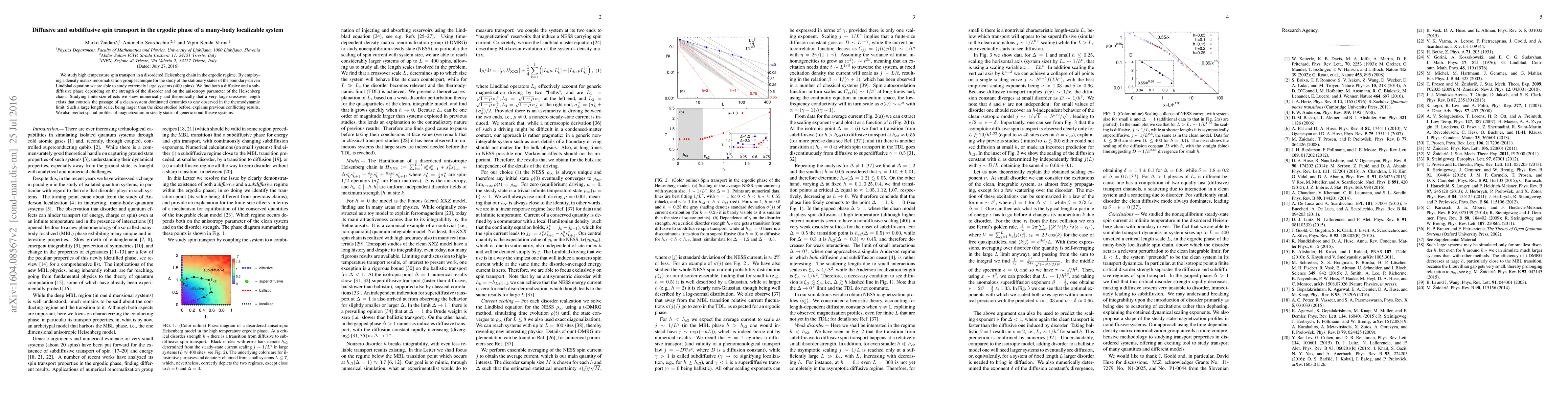 We study high temperature spin transport in a disordered Heisenberg chain in the ergodic regime. By employing a density matrix renormalization group technique for the study of the stationary states of the boundary-driven Lindblad equation we are able to study extremely large systems (400 spins). We find both a diffusive and a subdiffusive phase depending on the strength of the disorder and on the anisotropy parameter of the Heisenberg chain. Studying finite-size effects we show numerically and theoretically that a very large crossover length exists that controls the passage of a clean-system dominated dynamics to one observed in the thermodynamic limit. Such a large length scale, being larger than the sizes studied before, explains previous conflicting results. We also predict spatial profiles of magnetization in steady states of generic nondiffusive systems.